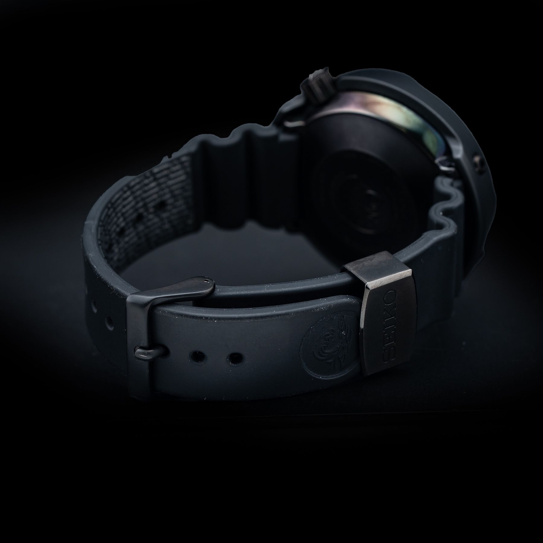 This watch features a 48mm titanium case on rubber strap. This watch also sports a color dial. Powered by a spring drive movement. Water resistance up to 1000 meters.