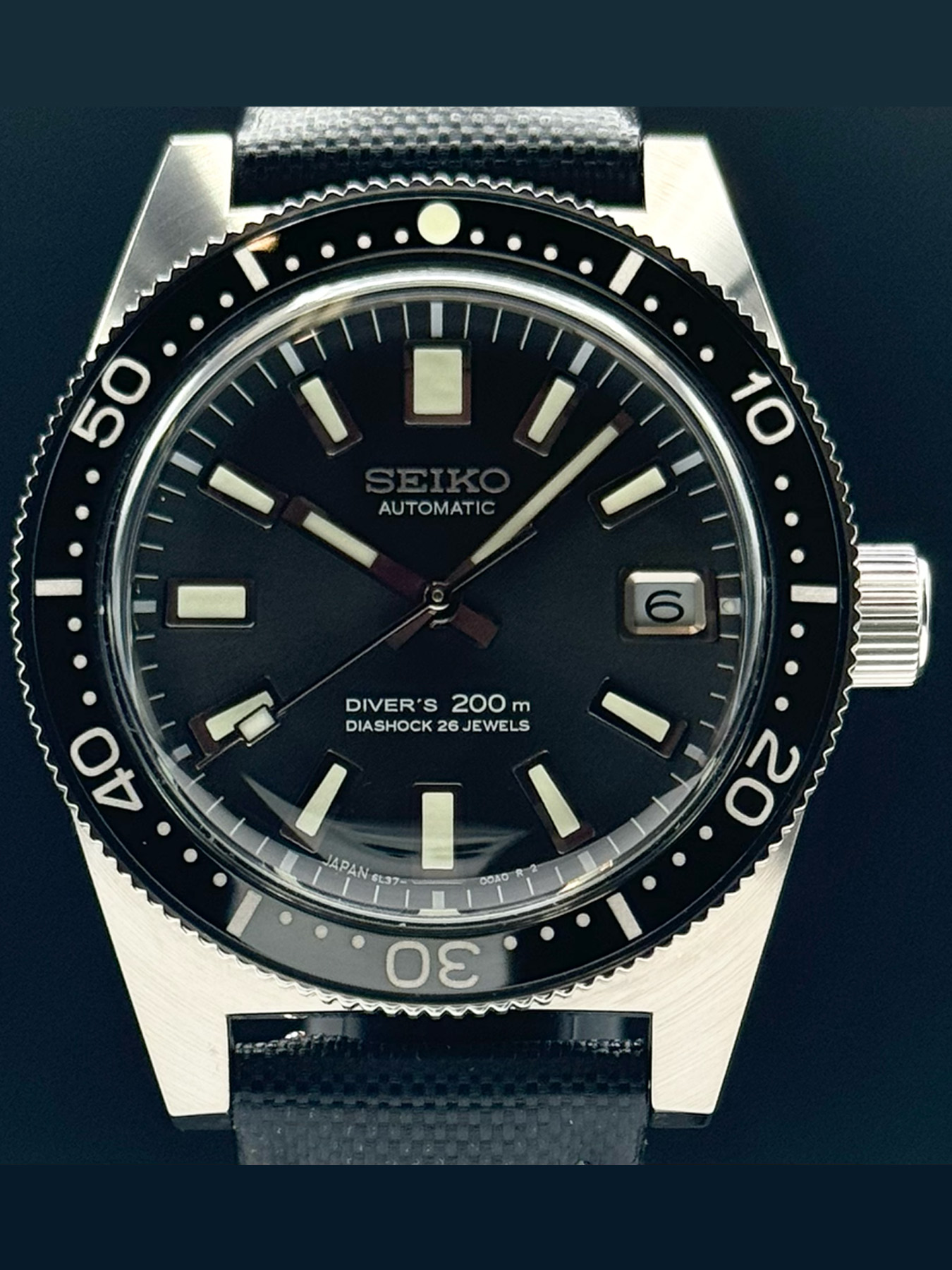This Seiko Prospex SJE093 1965 Diver’s Re-creation Limited Edition is in GREAT condition. This watch includes its Original Box, Original Papers and Warranty Card Dated 2024. Extra black rubber strap. This watch has been fully authenticated and certified by Exquisite Timepieces.