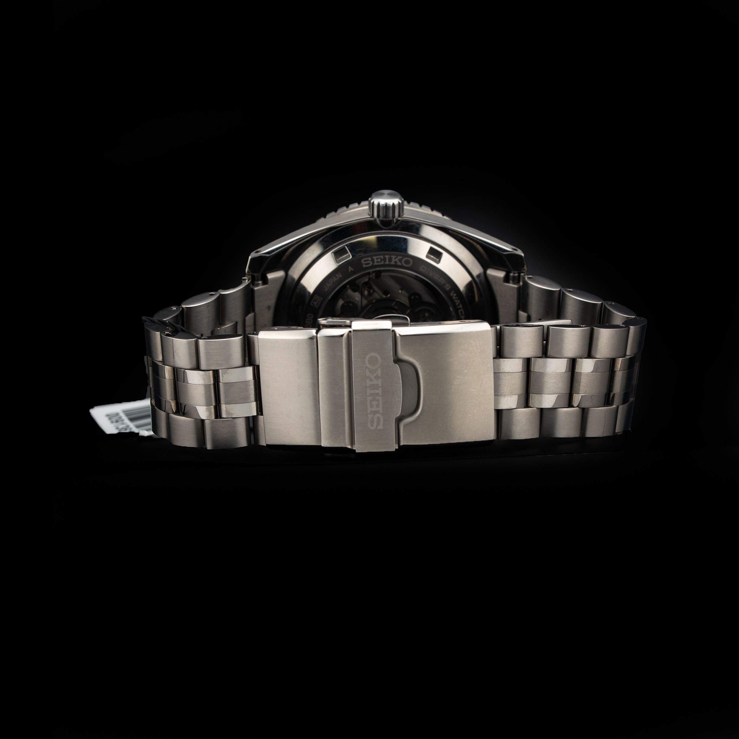 This watch features a 39mm stainless steel case on stainless steel bracelet. This watch also sports a black dial. Powered by a mechanical automatic movement. Water resistance up to 200 meters.