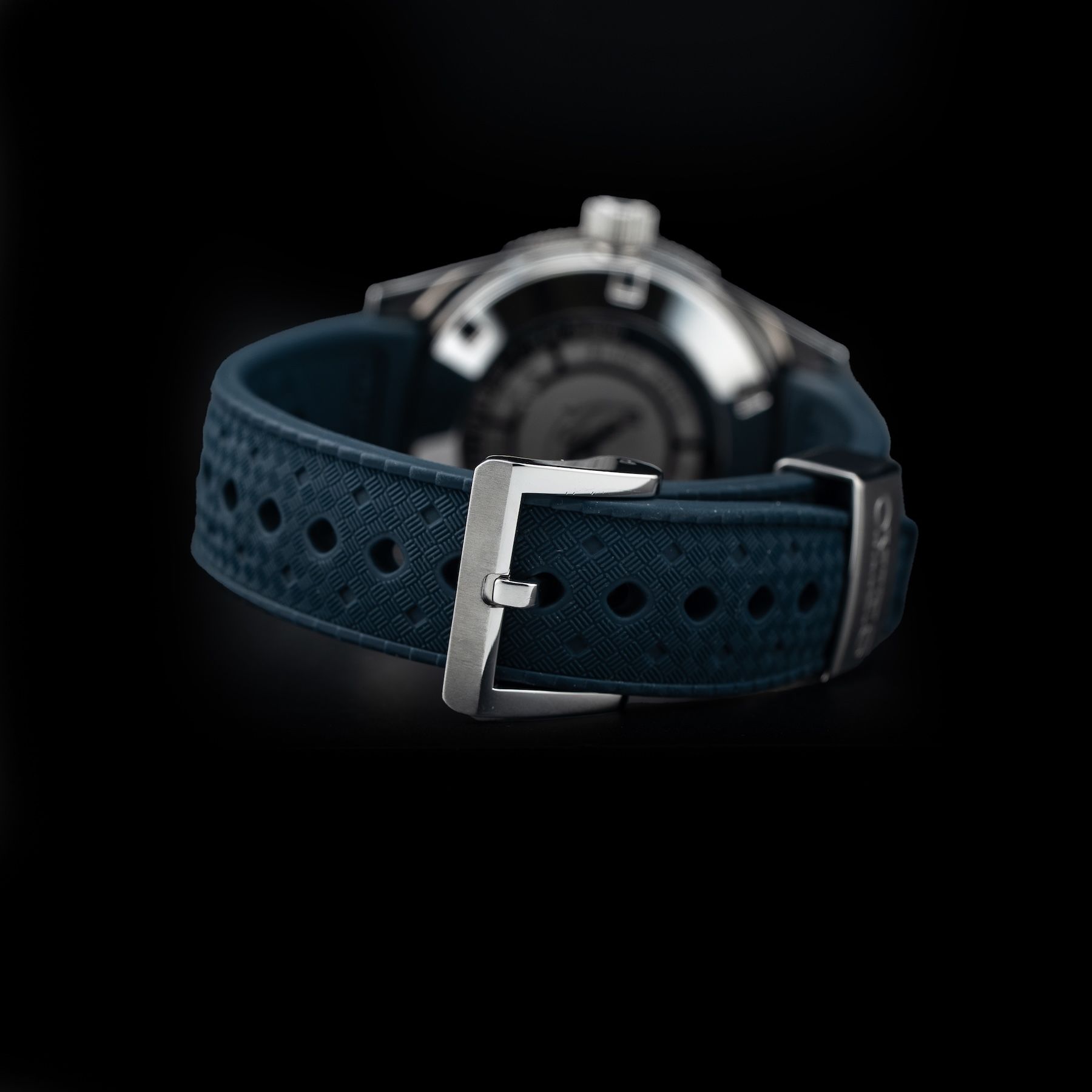 This watch features a 39mm ever-brilliant steel case on silicone strap. This watch also sports a blue dial. Powered by a mechanical automatic movement. Water resistance up to 200 meters.