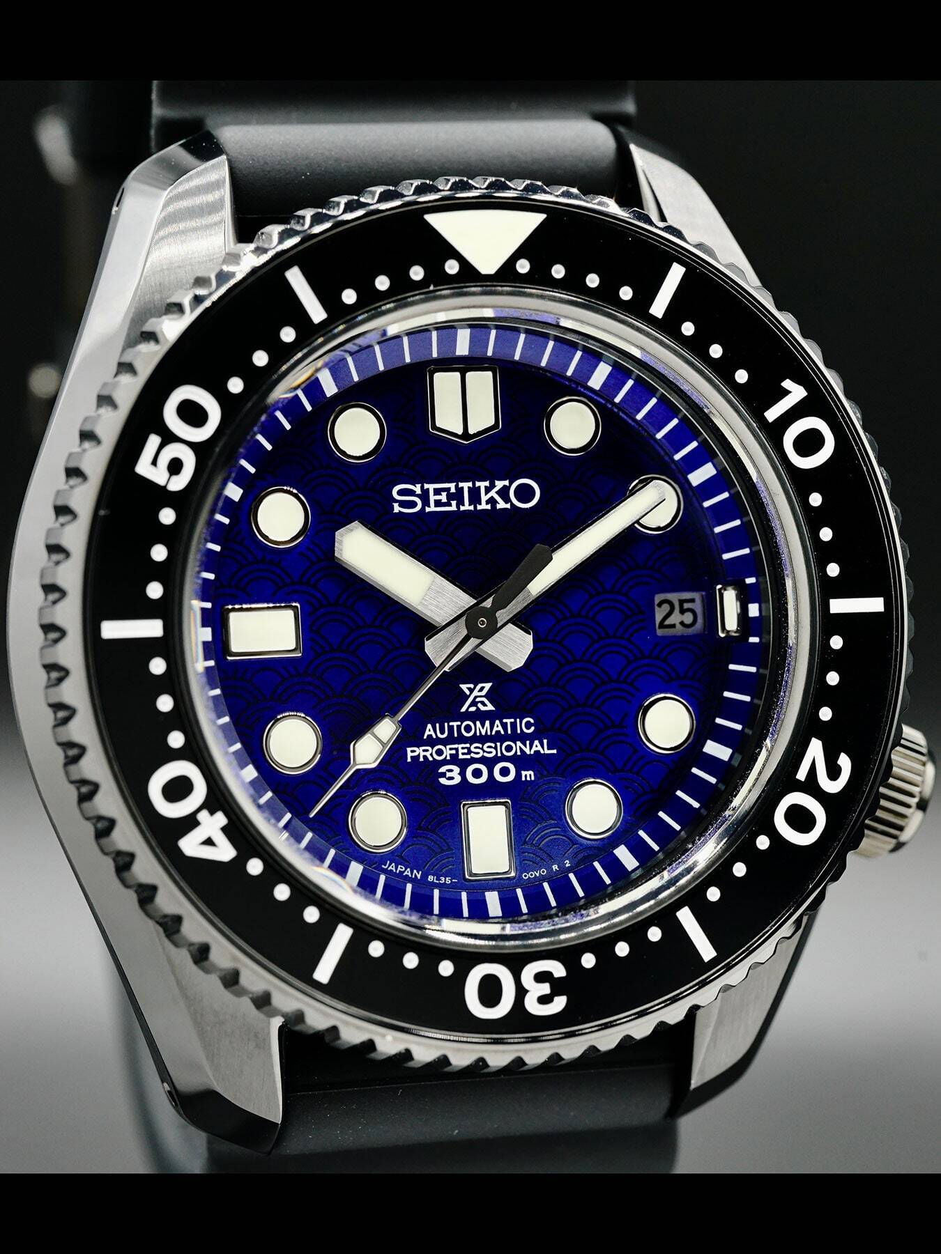 Automatic movement powered by Seiko Caliber 8L35 for a power reserve of approximately 50 hours. Water resistance up to 300 meters.