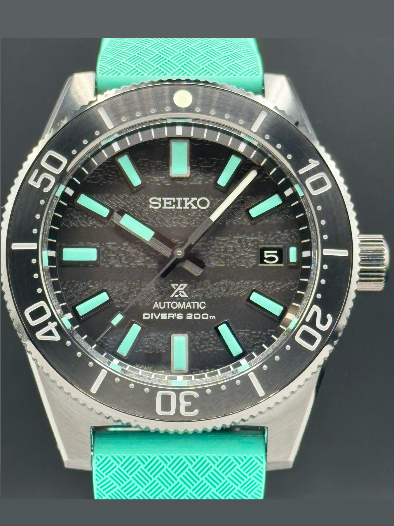 This Seiko Prospex SLA067 1965 Re-interpretation Night Vision Limited Edition is in GREAT condition. This watch includes its Original Box, Original Papers, Warranty Card (no date) and Strap. This watch has been fully authenticated and certified by Exquisite Timepieces.