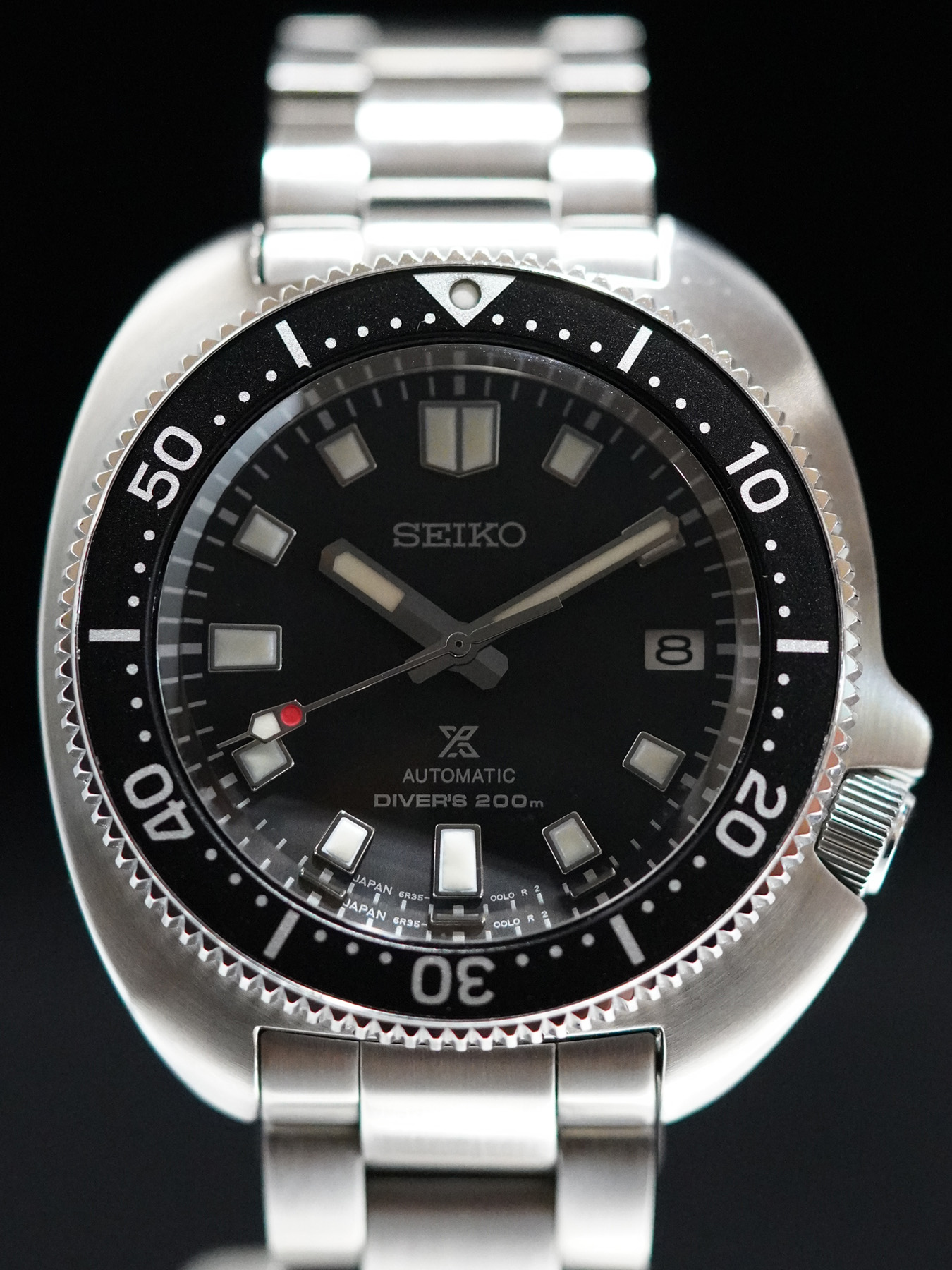 This watch features a 42mm steel case on steel bracelet. This watch also sports a black dial. Powered by a mechanical automatic movement. Water resistance up to 200 meters.