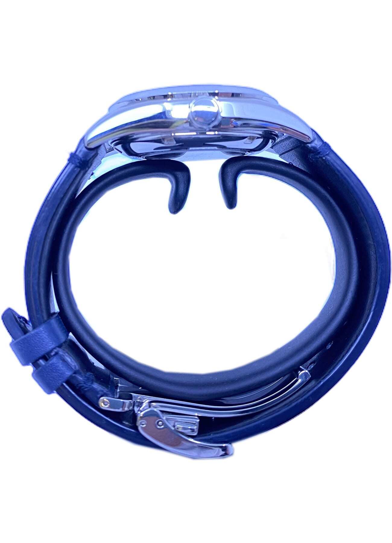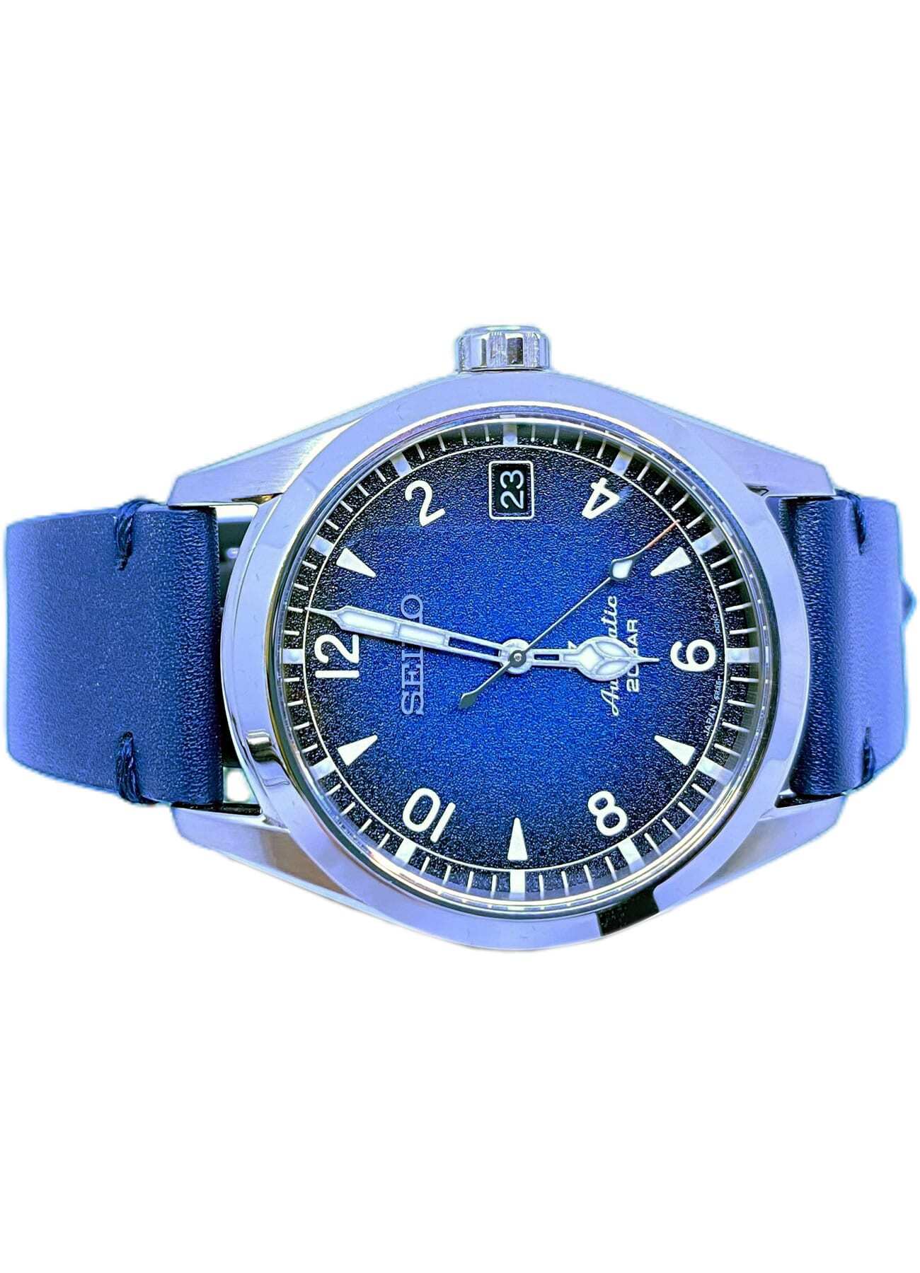 - This timepiece features a 38mm steel case paired with a high quality leather strap. It showcases a distinctive blue dial and is powered by a precise automatic winding movement. The watch is designed with a water resistance of up to 100m.