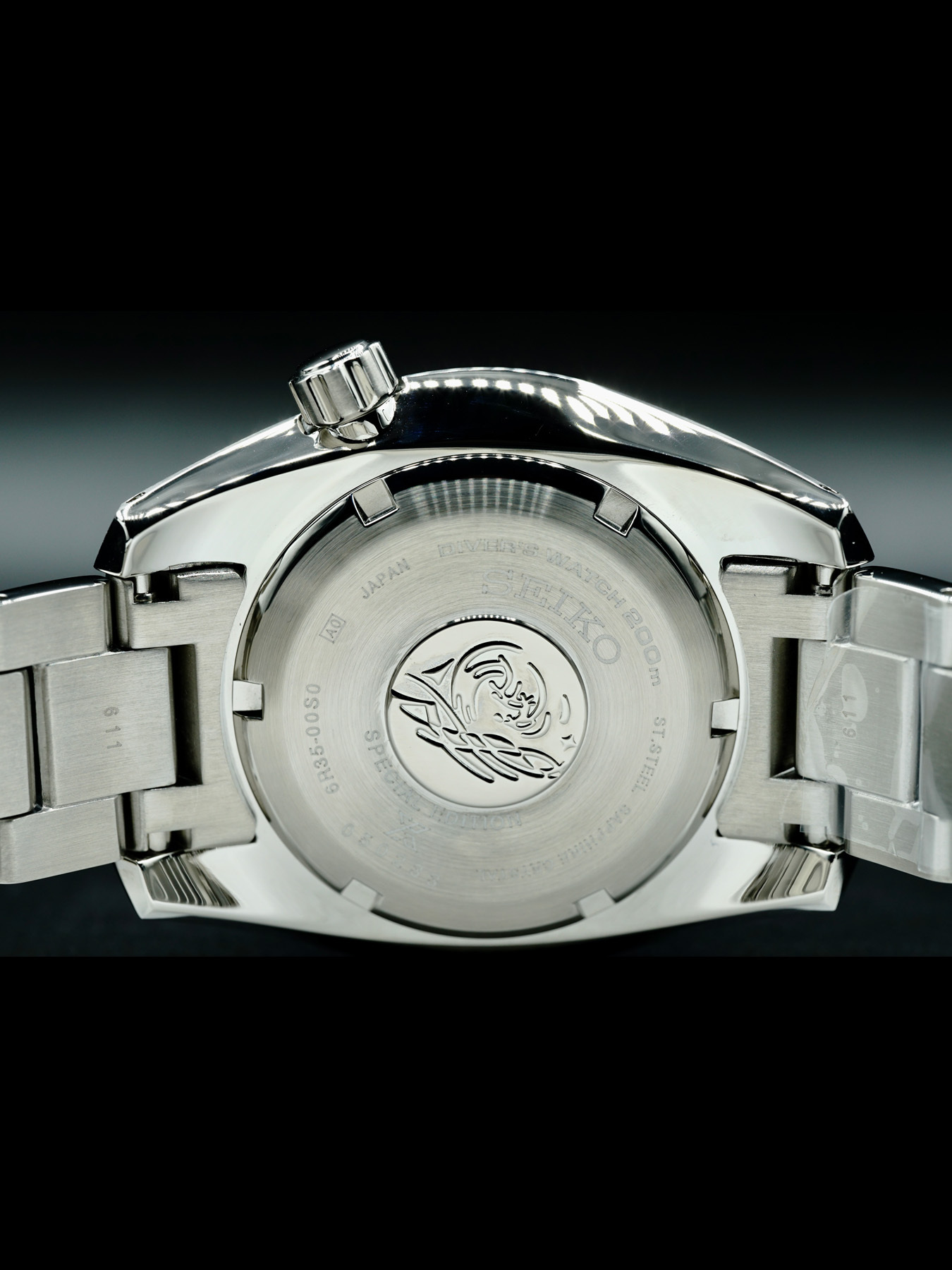 Built for the Ice Diver - U.S. Special Edition. Designed for those who treat life as the ultimate adventure, the Seiko Prospex line meets every challenge with technological excellence and style. Part of a rich legacy of innovation in high-intensity timekeeping, Prospex continues to celebrate a long history of sports watch excellence with recreations and reinterpretations of landmark achievements. Honoring the acclaimed 2007 diver's watch, with its distinctive wide case and the thick printed bezel numerals, this reimagined Special Edition also pays tribute to the durability of Seiko watches in the coldest conditions, with colors suggesting light reflected on ice. Trusted equipment for the Japanese Antarctic Research Expedition (JARE) and on Mt. Everest climbs, Seiko sport watches have forged a deep connection between the company and those who rely on superior timekeeping in the most demanding environments, from frozen peaks to the watery depths explored by ocean conservationists. The deeply patterned gray dial, featuring a magnified date window and LumiBrite hands and markers, is topped by a scratch-resistant sapphire crystal. A 24-jewel automatic movement beats at a frequency of 21,600 vibrations per hour, with a power reserve of approximately 70 hours, and can be wound manually or automatically. Following ISO standards for scuba diving to depths of up to 200 meters, this exceptional watch is crafted of stainless steel, with gray one-way rotating elapsed timing bezel, screwdown crown and caseback, and tri-fold push button release clasp with secure lock and extender. 200m Water Resistant