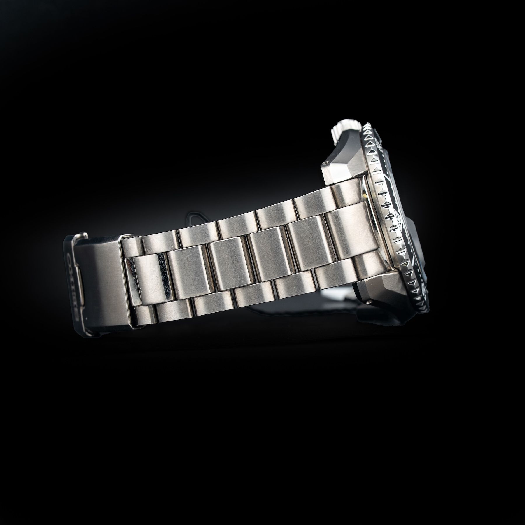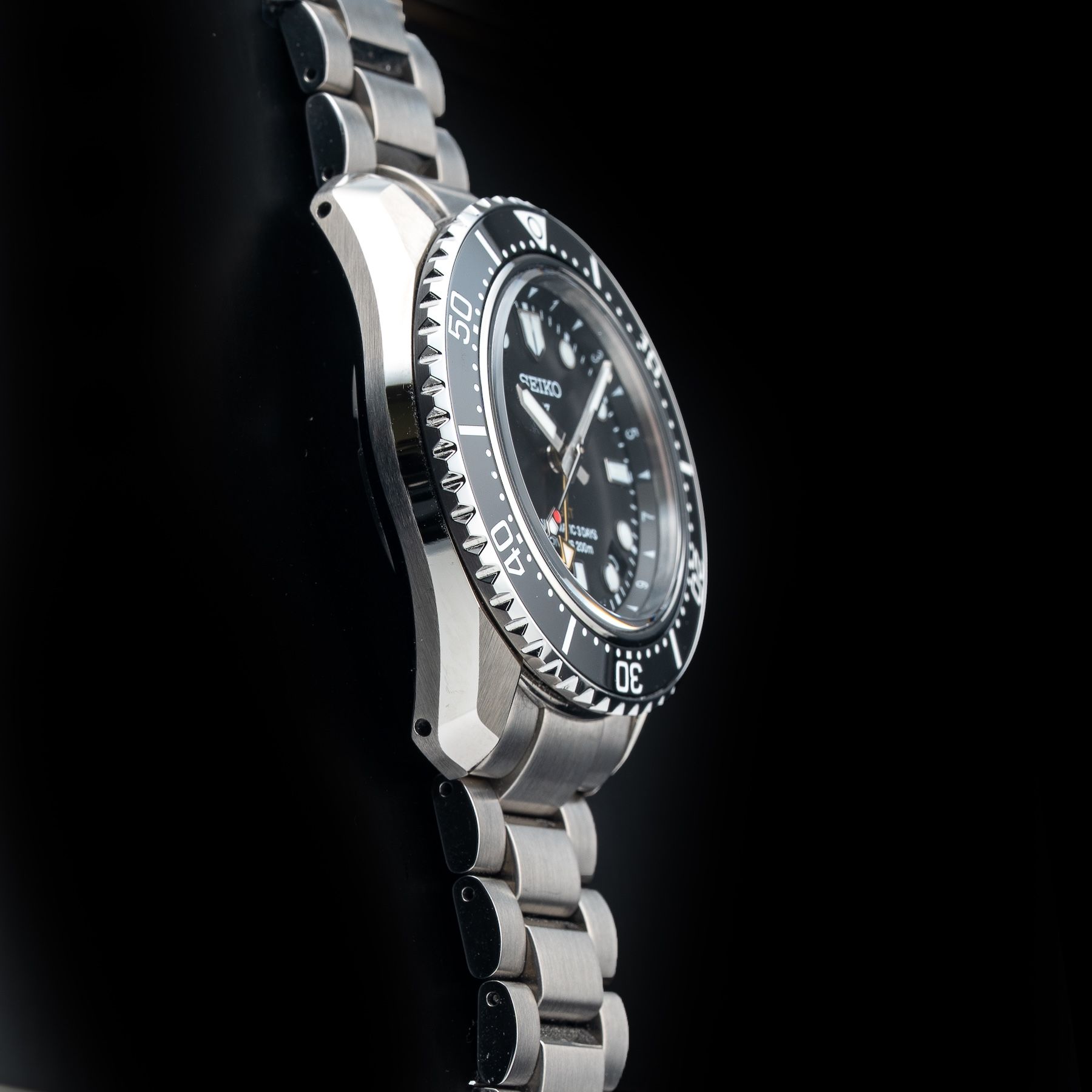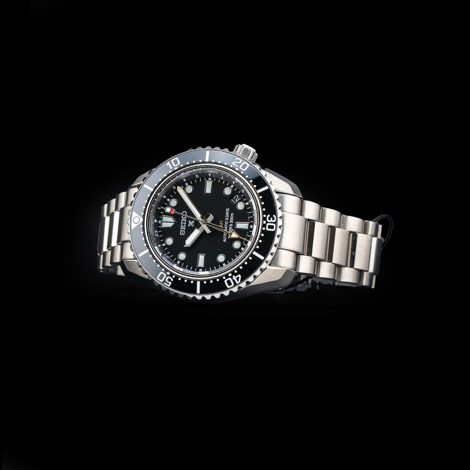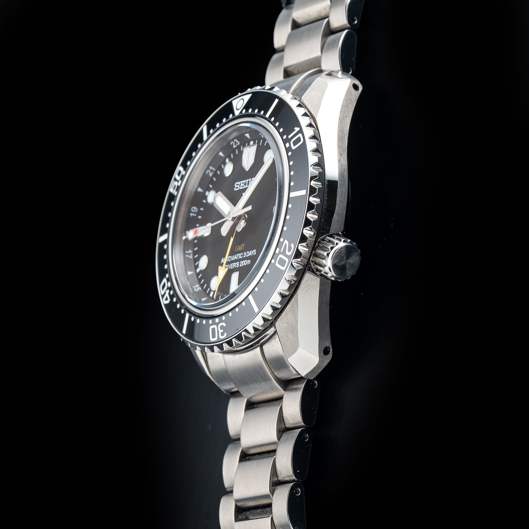 This watch features a 42mm stainless steel case on stainless steel bracelet. This watch also sports a black dial. Powered by a mechanical automatic movement. Water resistance up to 200 meters.