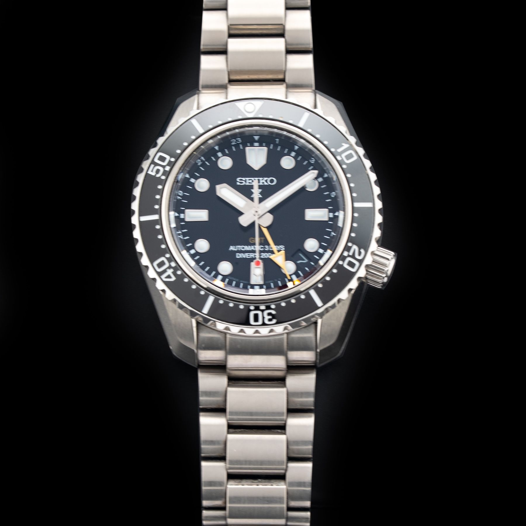 This Seiko Prospex SPB383 1968 Diver’s Modern Re-Interpretation GMT is in GREAT condition. It has boxes, papers and warranty card dated 07/13/2024. This watch has been fully authenticated and certified by Exquisite Timepieces.