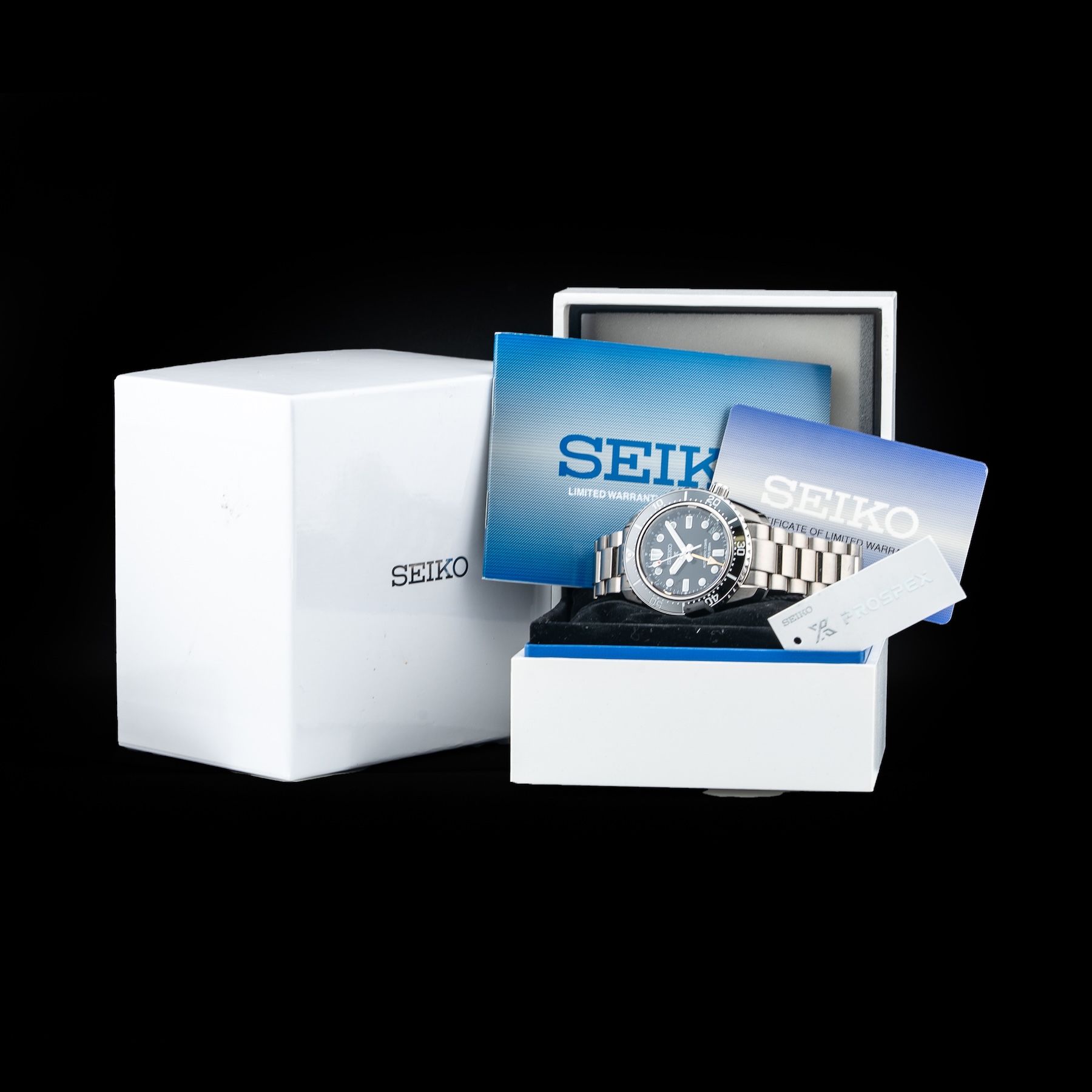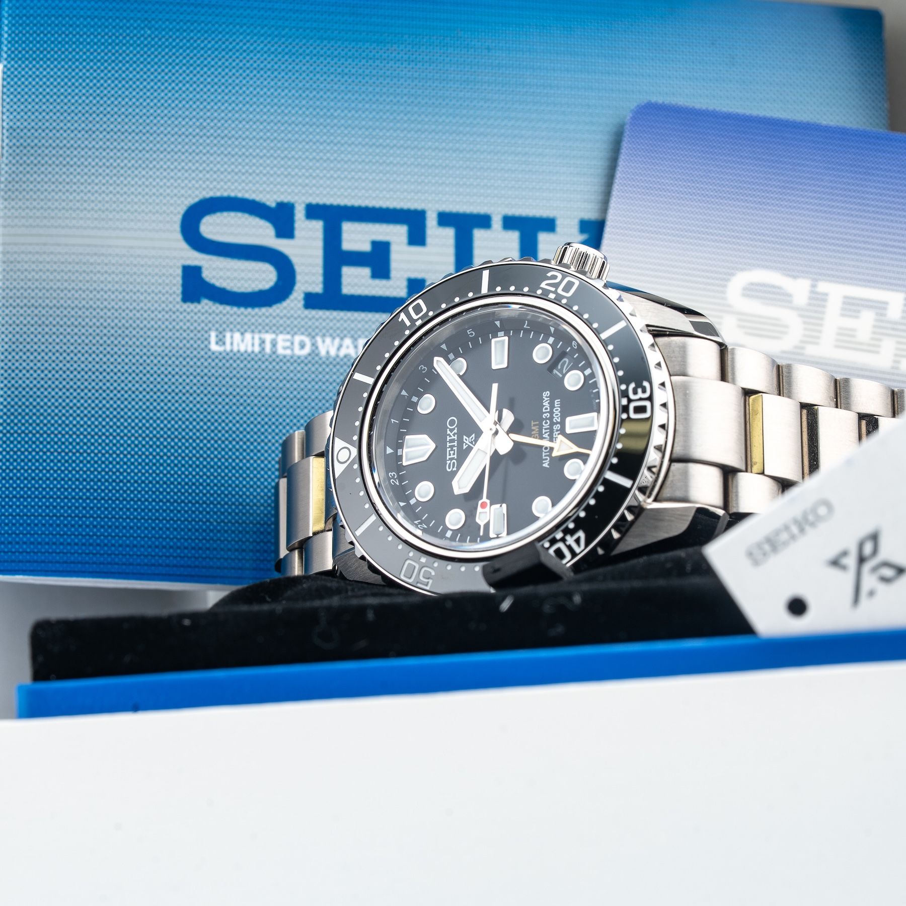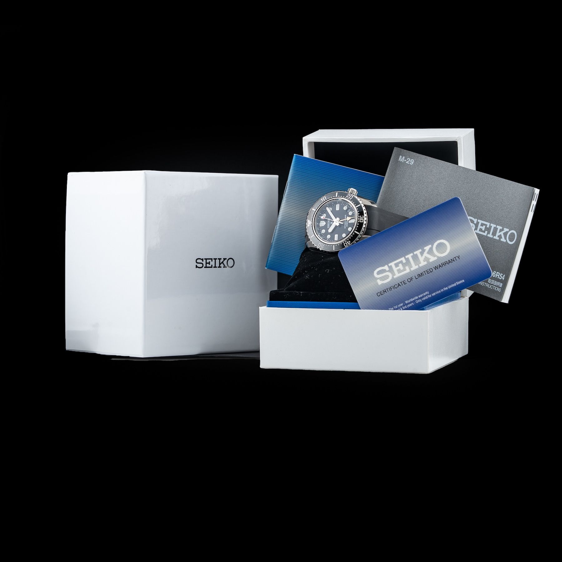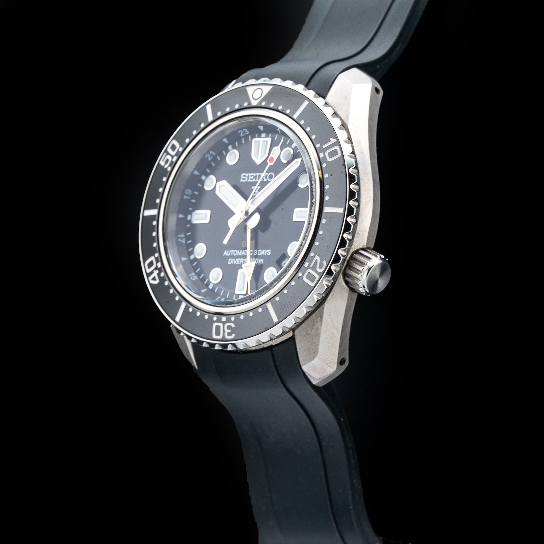This Seiko Prospex SPB383 1968 Diver’s Modern Re-Interpretation GMT is in GREAT condition. It has boxes, papers and warranty card dated 4/9/24. This watch has been fully authenticated and certified by Exquisite Timepieces.