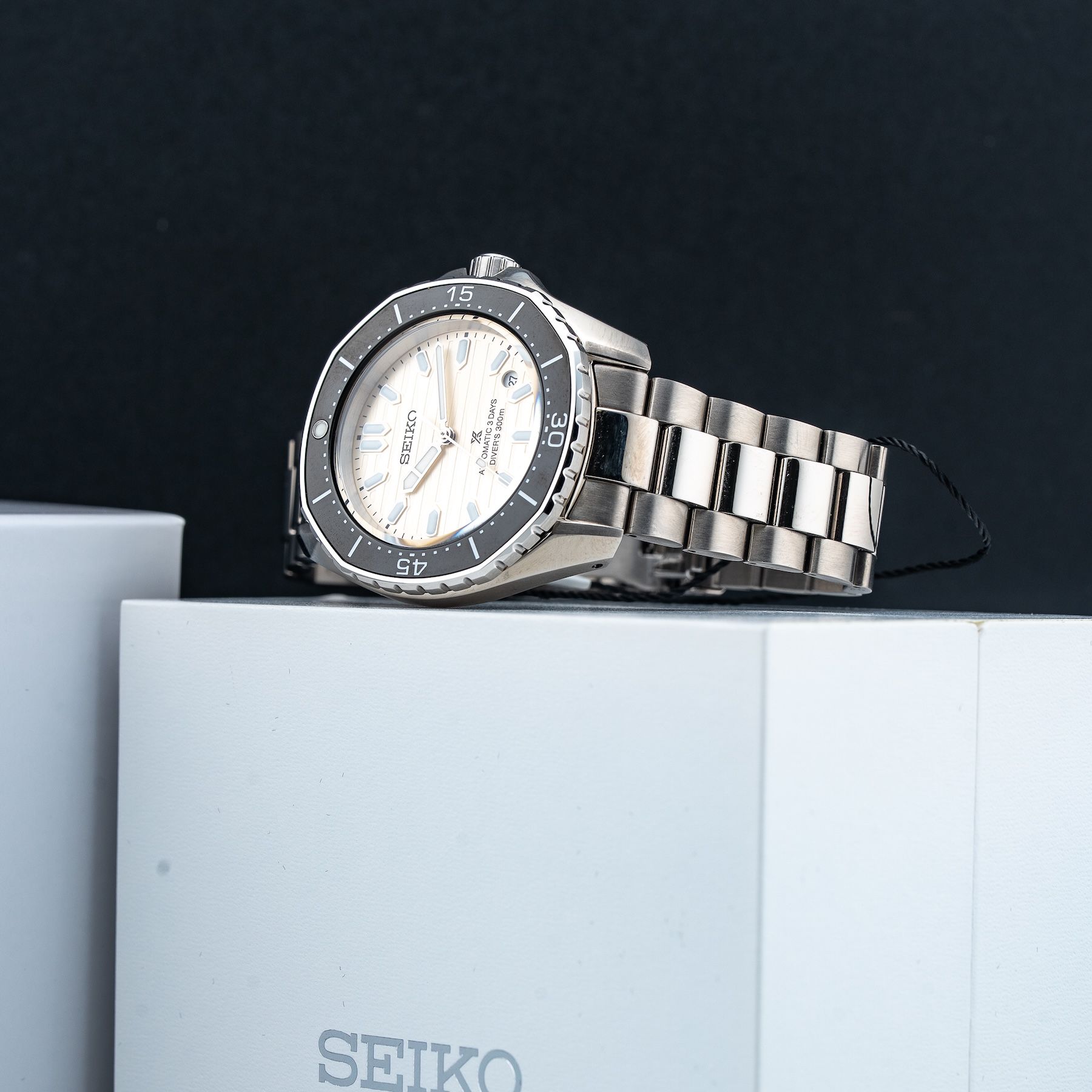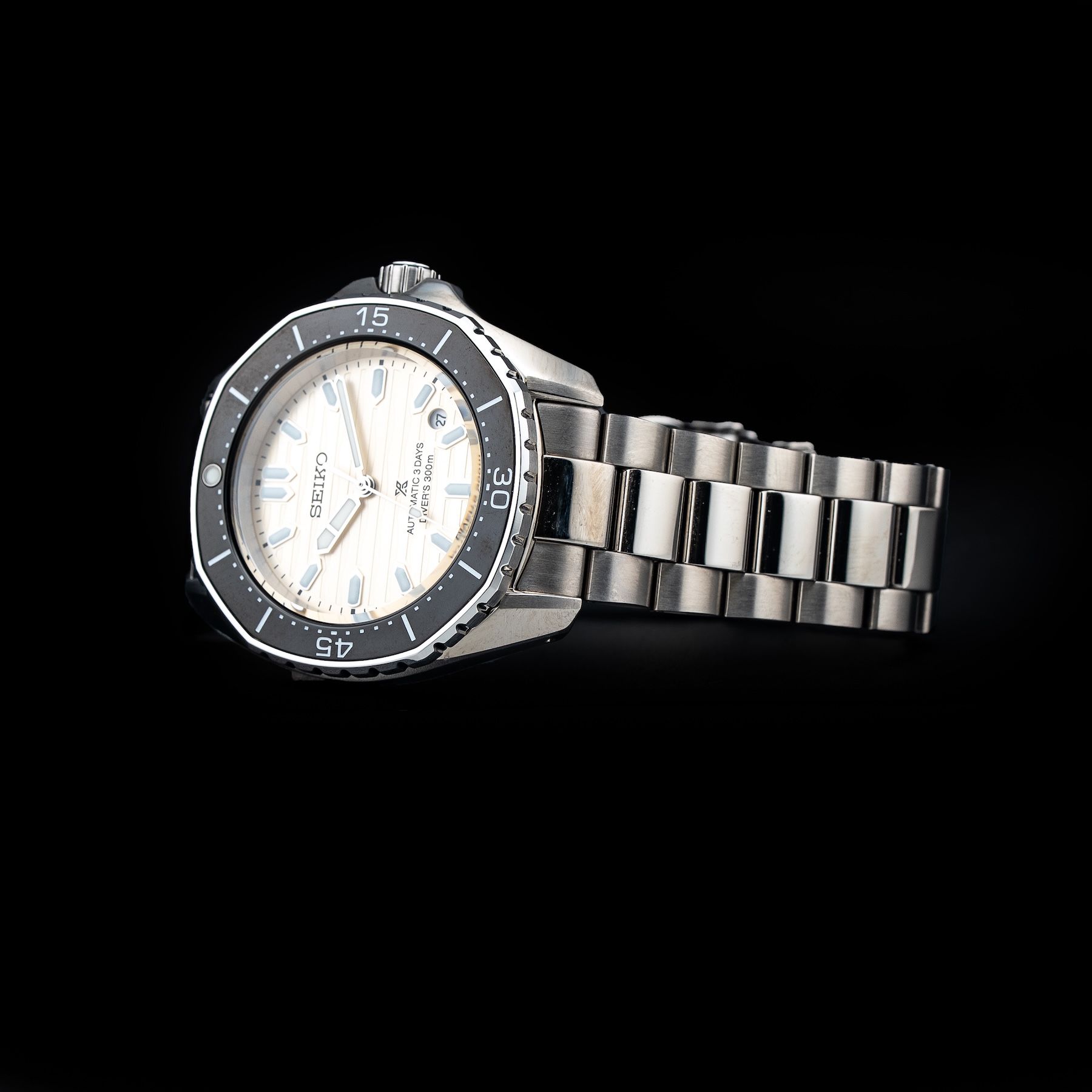 - This timepiece features a 41mm steel case paired with a high quality steel bracelet. It showcases a distinctive ivory dial and is powered by a precise automatic winding movement. The watch is designed with a water resistance of up to 300m.