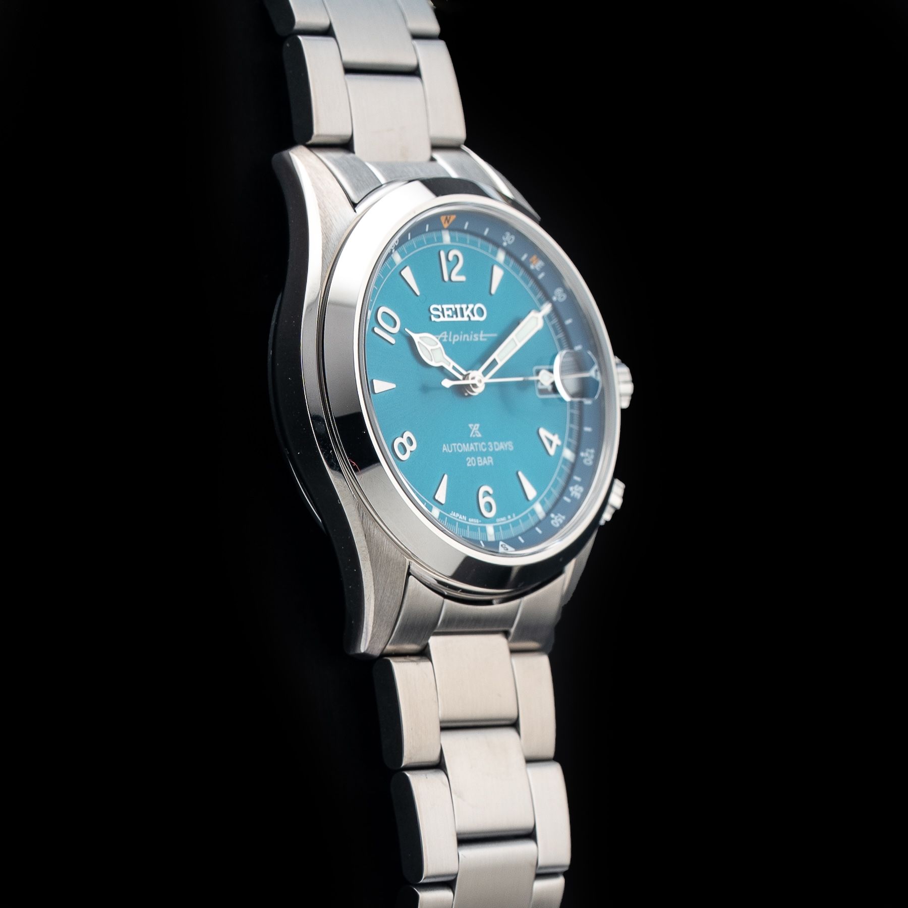 This Seiko Prospex SPB503 Alpinist Turquoise Dial is in GREAT condition. This watch includes its Original Box, Original Papers and Warranty Card Dated 11/10/2025. Case back is scratched. This watch has been fully authenticated and certified by Exquisite Timepieces. Please note, the photos shown are of the actual watch you will receive.
