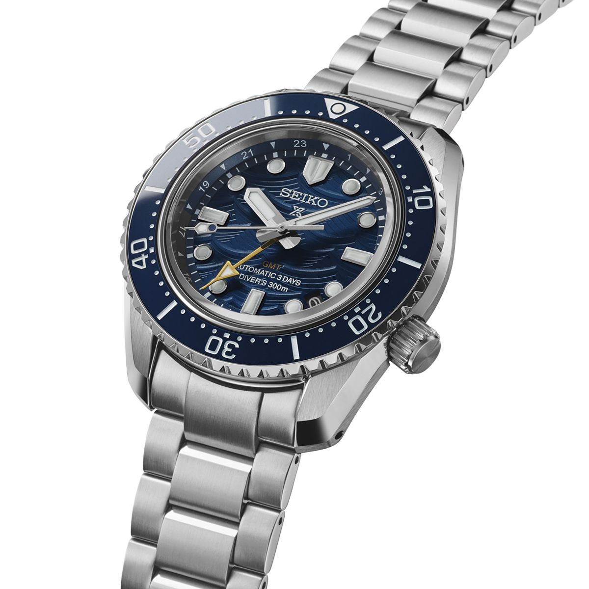 The blue-dialed model reflects the design of the 1968 diver’s watch and is powered with the GMT Caliber 6R54. Its water resistance has increased to 300 meters compared to the 200-meter resistance of previous diver’s watches equipped with Caliber 6R54.