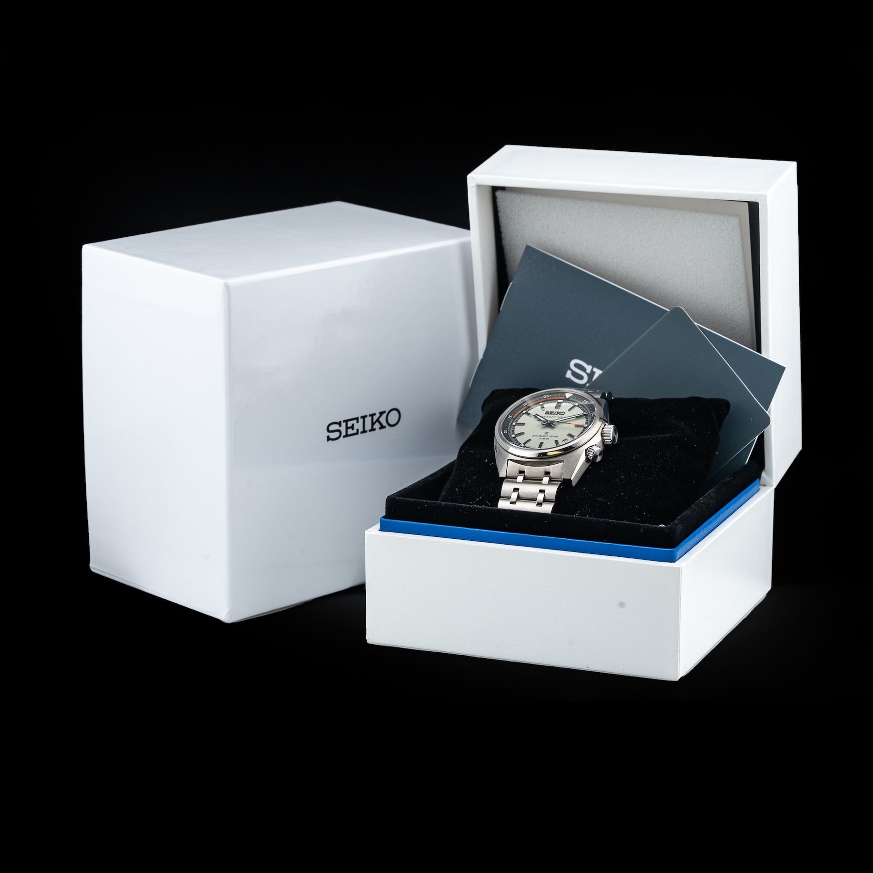 This Seiko Prospex SPB513 Speedtimer is in GREAT condition. This watch includes its Original Box, Original Papers and Warranty Card Dated 12/2/2025. This watch has been fully authenticated and certified by Exquisite Timepieces. Please note, the photos shown are of the actual watch you will receive.