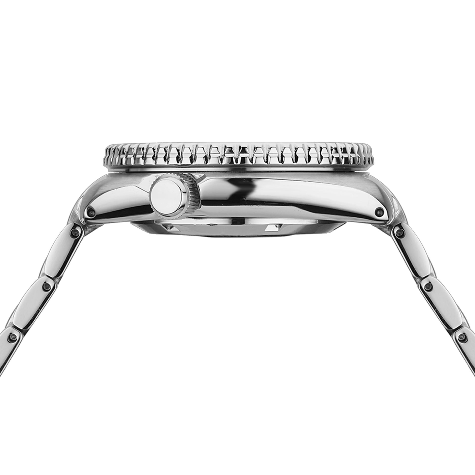 - This timepiece features a 45mm steel case paired with a high quality steel bracelet. It showcases a distinctive blue dial and is powered by a precise automatic winding movement. The watch is designed with a water resistance of up to 200m.