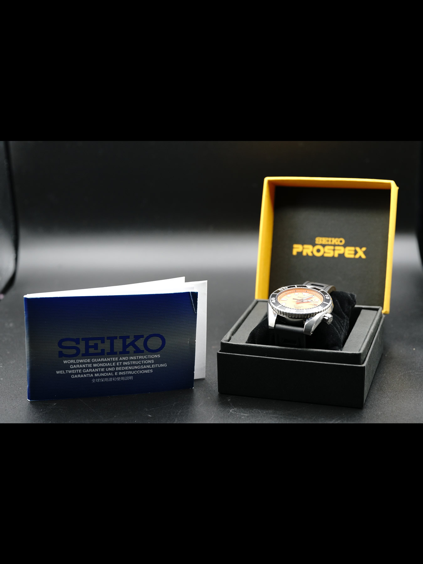 This is a pre-owned timepiece. Excellent condition peach colored Seiko comes with box and papers!