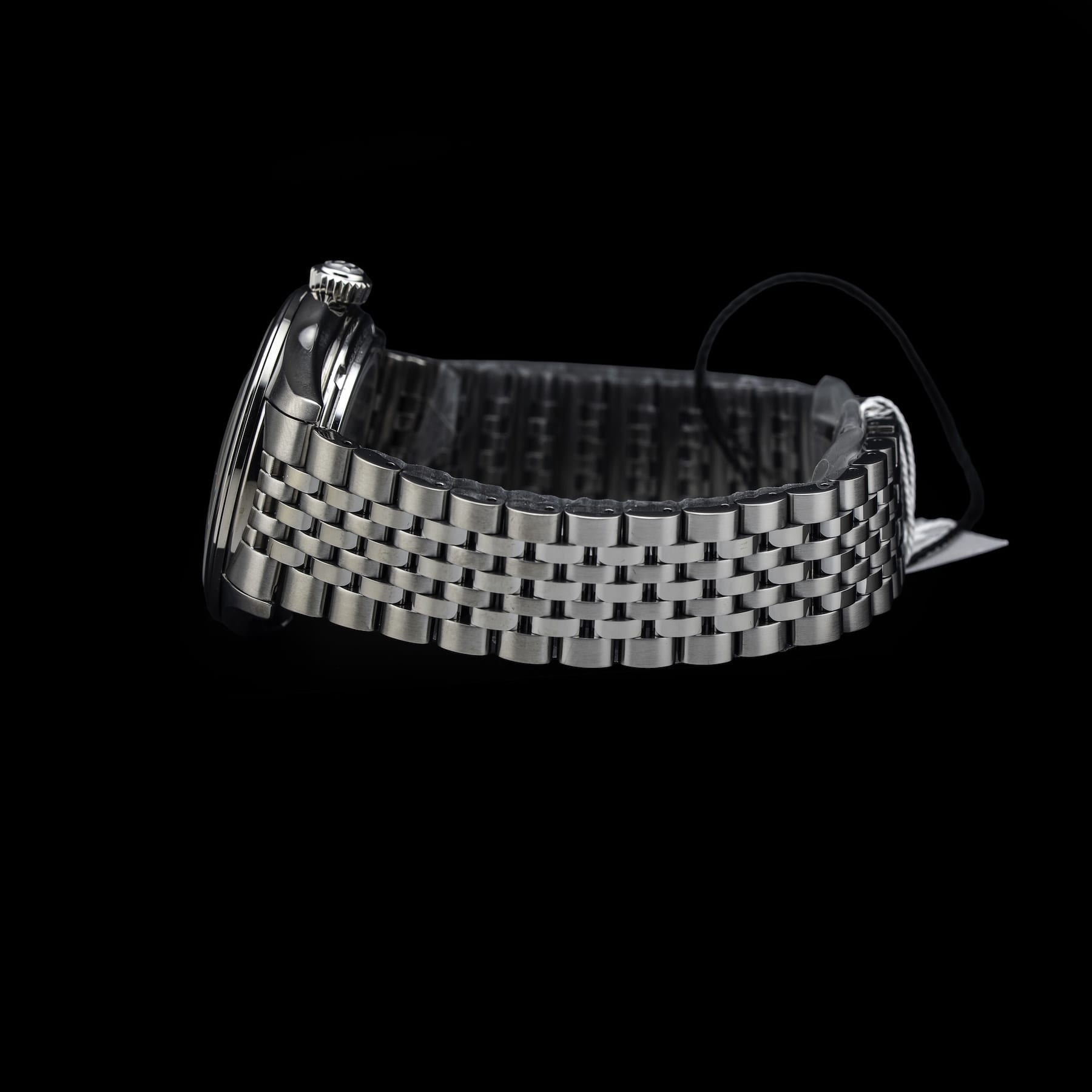 This watch features a 40mm stainless steel case on stainless steel bracelet. This watch also sports a white dial. Powered by a mechanical automatic movement. Water resistance up to 100 meters.
