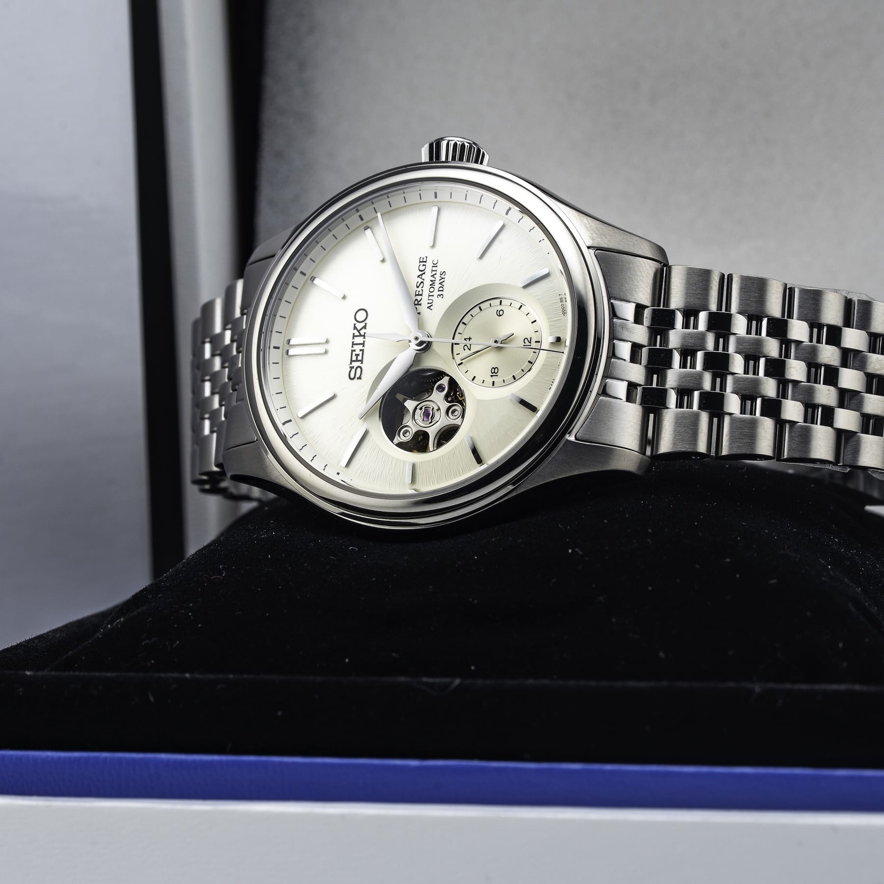 This Seiko Presage SPB469 Classic Semi-Skeleton Shiroiro is in GREAT condition. This watch includes its Original Box, Original Papers and Warranty Card Dated 03/20/2026. This watch has been fully authenticated and certified by Exquisite Timepieces. Please note, the photos shown are of the actual watch you will receive.