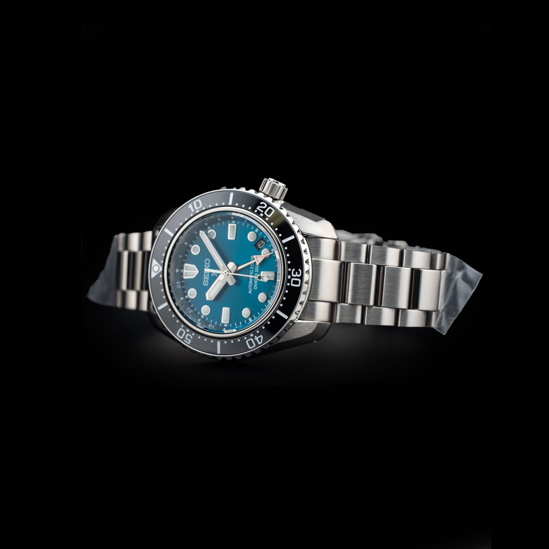 This watch features a 42mm stainless steel case on stainless steel bracelet. This watch also sports a turquoise dial. Powered by a mechanical automatic movement. Water resistance up to 200 meters.