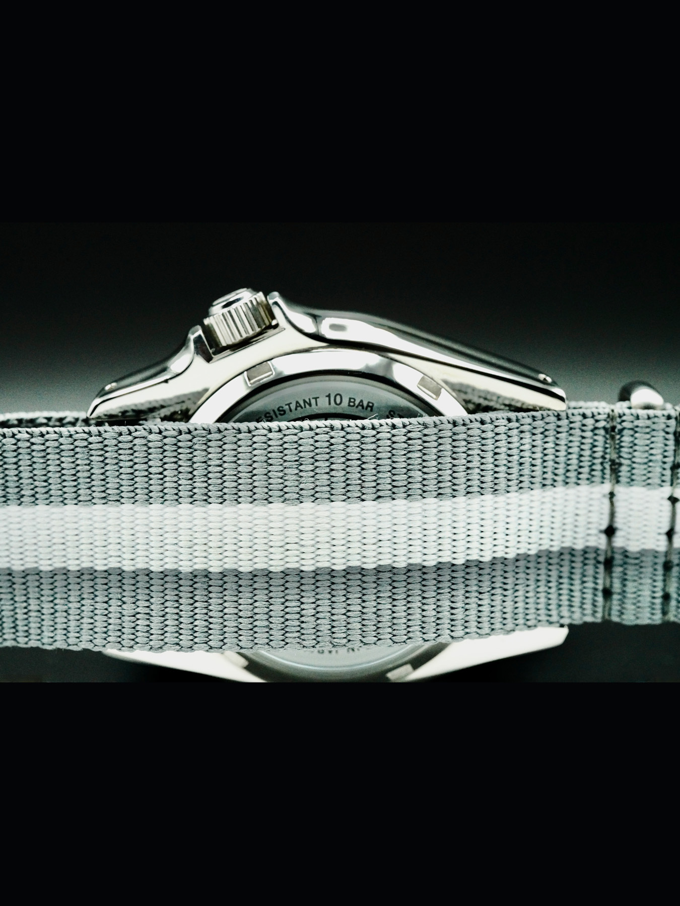 This watch features a 38mm steel case with white dial. Powered by a Mechanical Automatic Movement. Water resistance up to 100 meters.