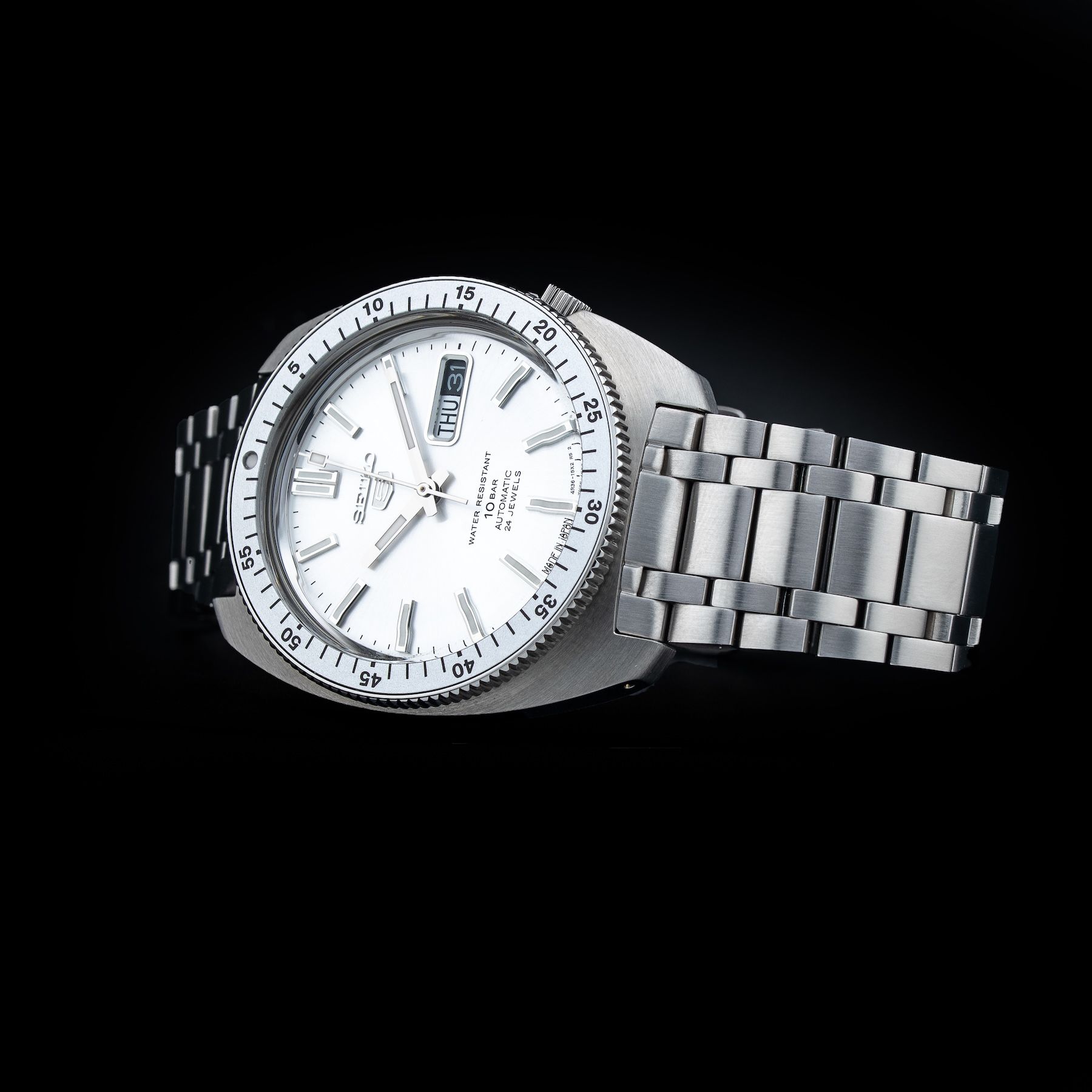 Seiko 5 Sports SRPL91 Heritage Design Re-Creation is in GREAT condition, it has box, papers and warranty card dated 07/28/2025. Extra links. This watch has been fully authenticated and certified by Exquisite Timepieces. Please note, the photos shown are of the actual watch you will receive.