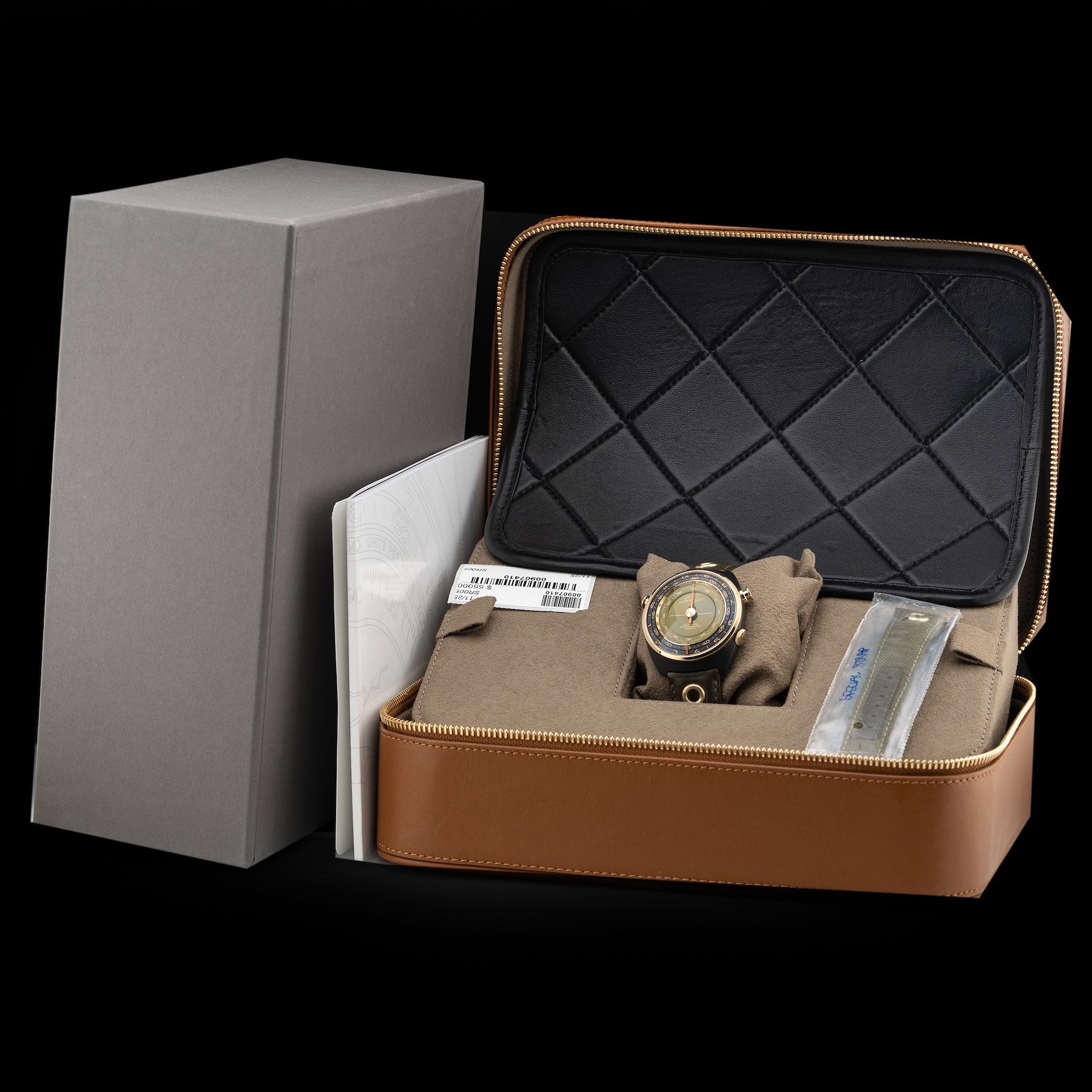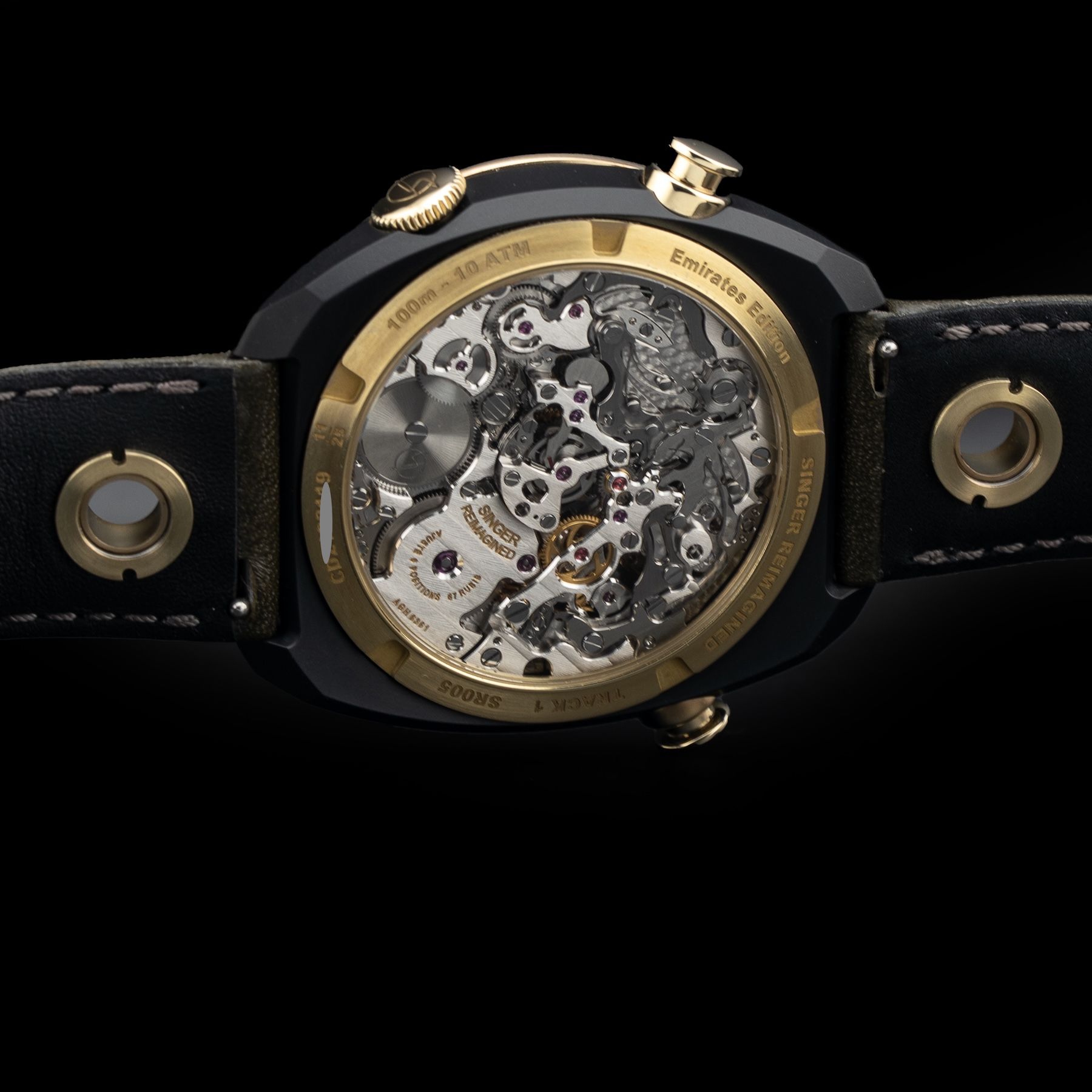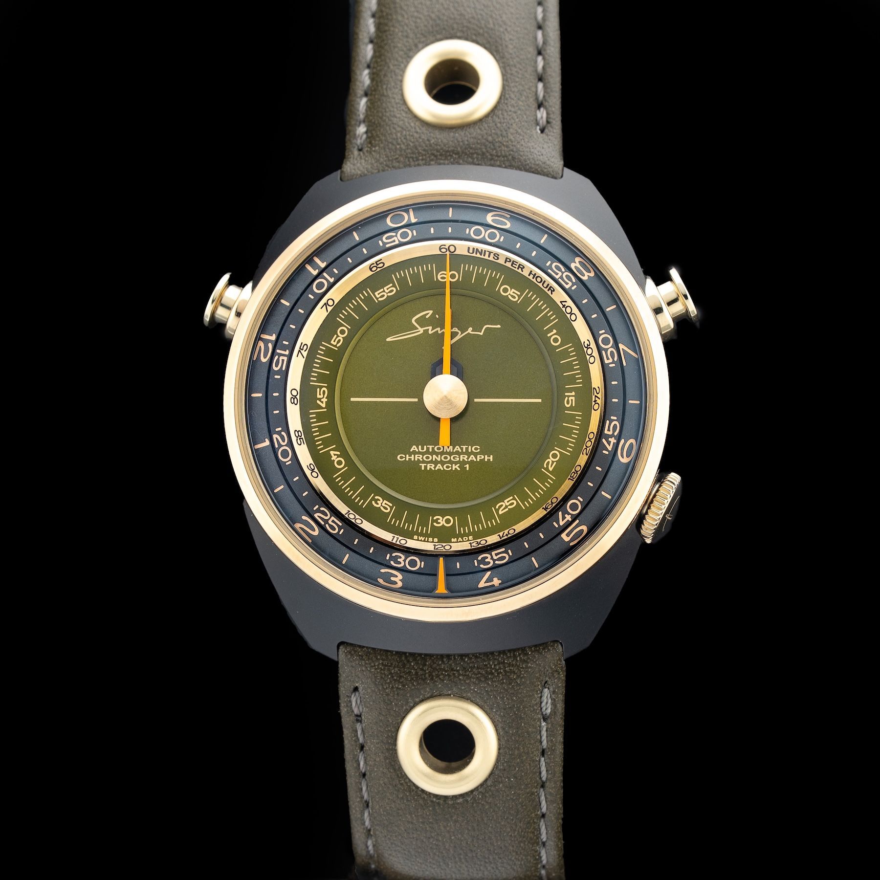 This Singer Reimagined Sr005 Track 1 Emirates Edition is in GREAT condition. This watch includes its Original Box, Original Papers, Warranty Card Dated 06/23/22 and Additional Army Green Canvas Strap. This watch has been fully authenticated and certified by Exquisite Timepieces.