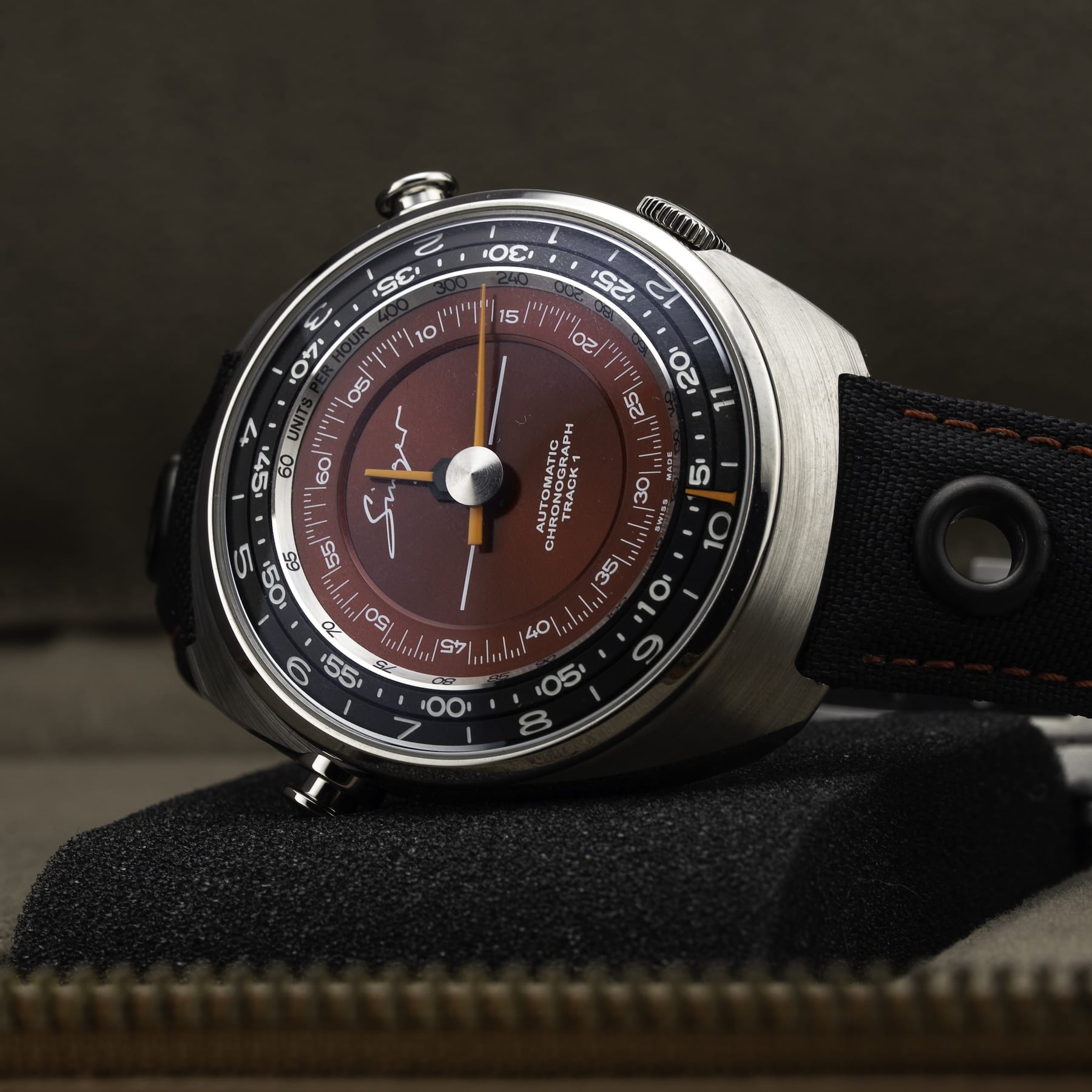 This Singer Reimagined Track 1 Flamboyant Edition SR007 is in GREAT condition. This watch includes its Original Box, Original Papers and warranty card. This watch has been fully authenticated and certified by Exquisite Timepieces. Please note, the photos shown are of the actual watch you will receive.