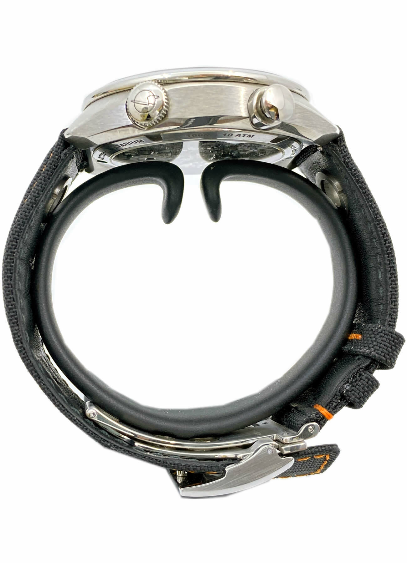 Here, the chronograph function takes center-stage – as it should in a sports watch. The chronograph hours, minutes and seconds are coaxially mounted in the center of the dial, allowing the elapsed time to be read easily and clearly with just a glance.