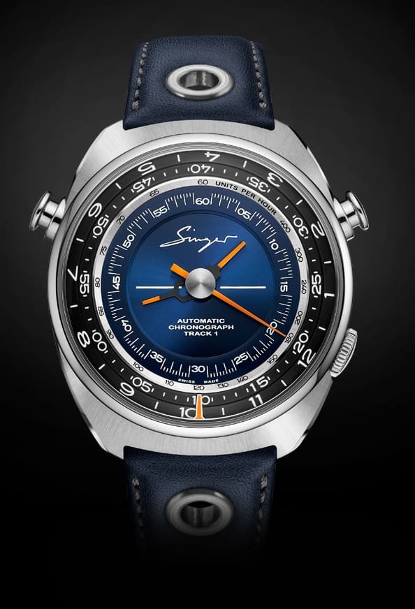 Following the introduction of the previous Singer Track1 Editions, Singer Reimagined continues its journey of very limited series with the London Edition.The elegant shape and flawless hand-finishing of its signature titanium case are underscored with a subtle deep blue dial.