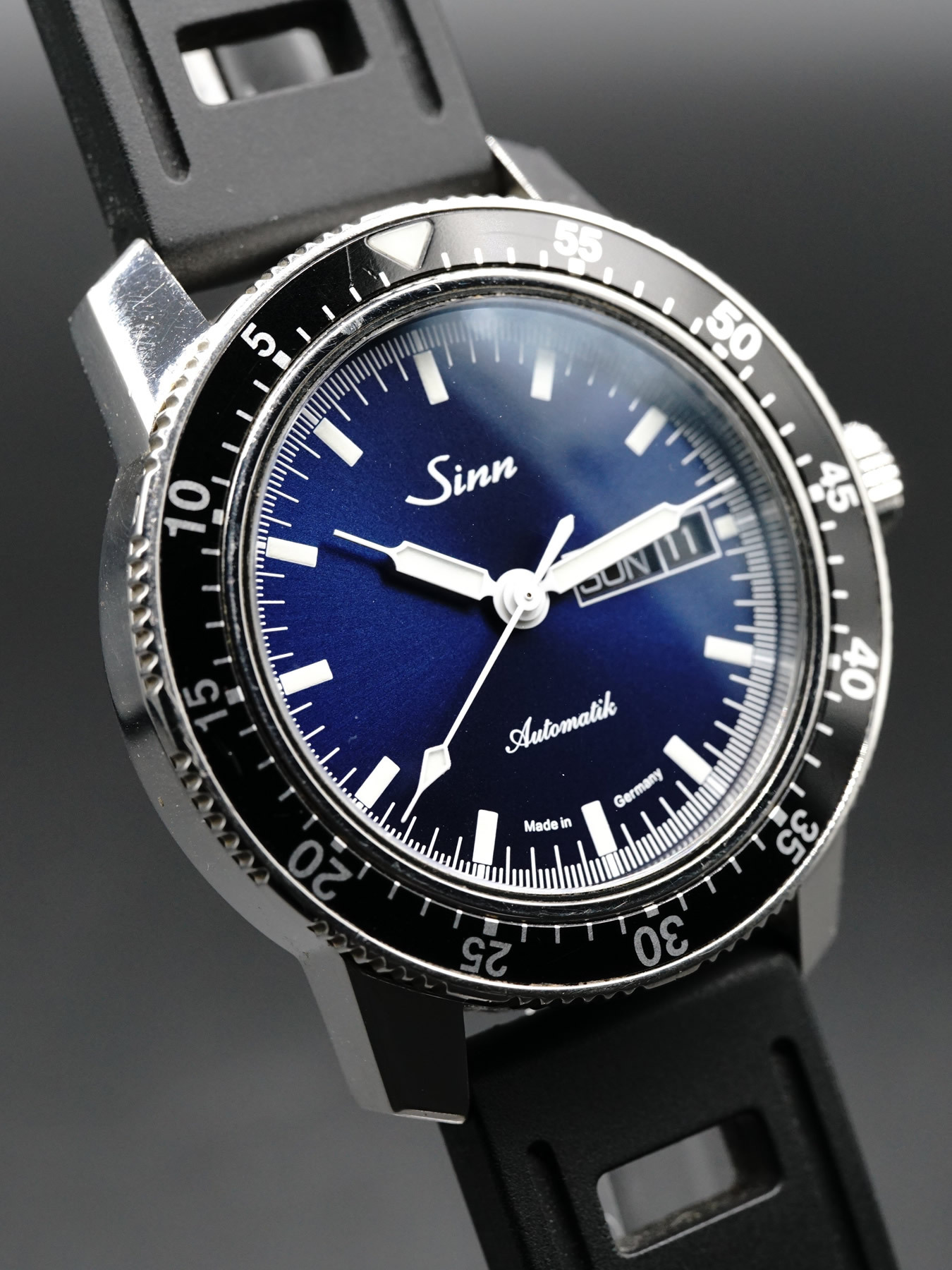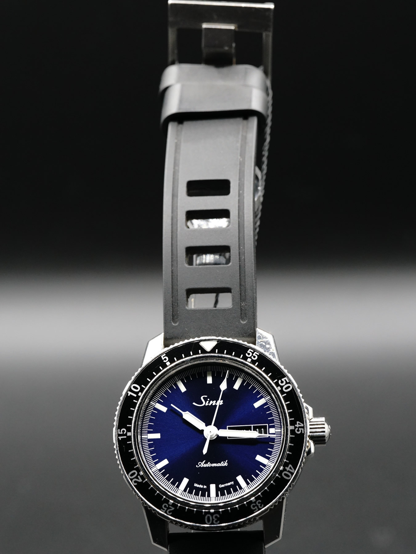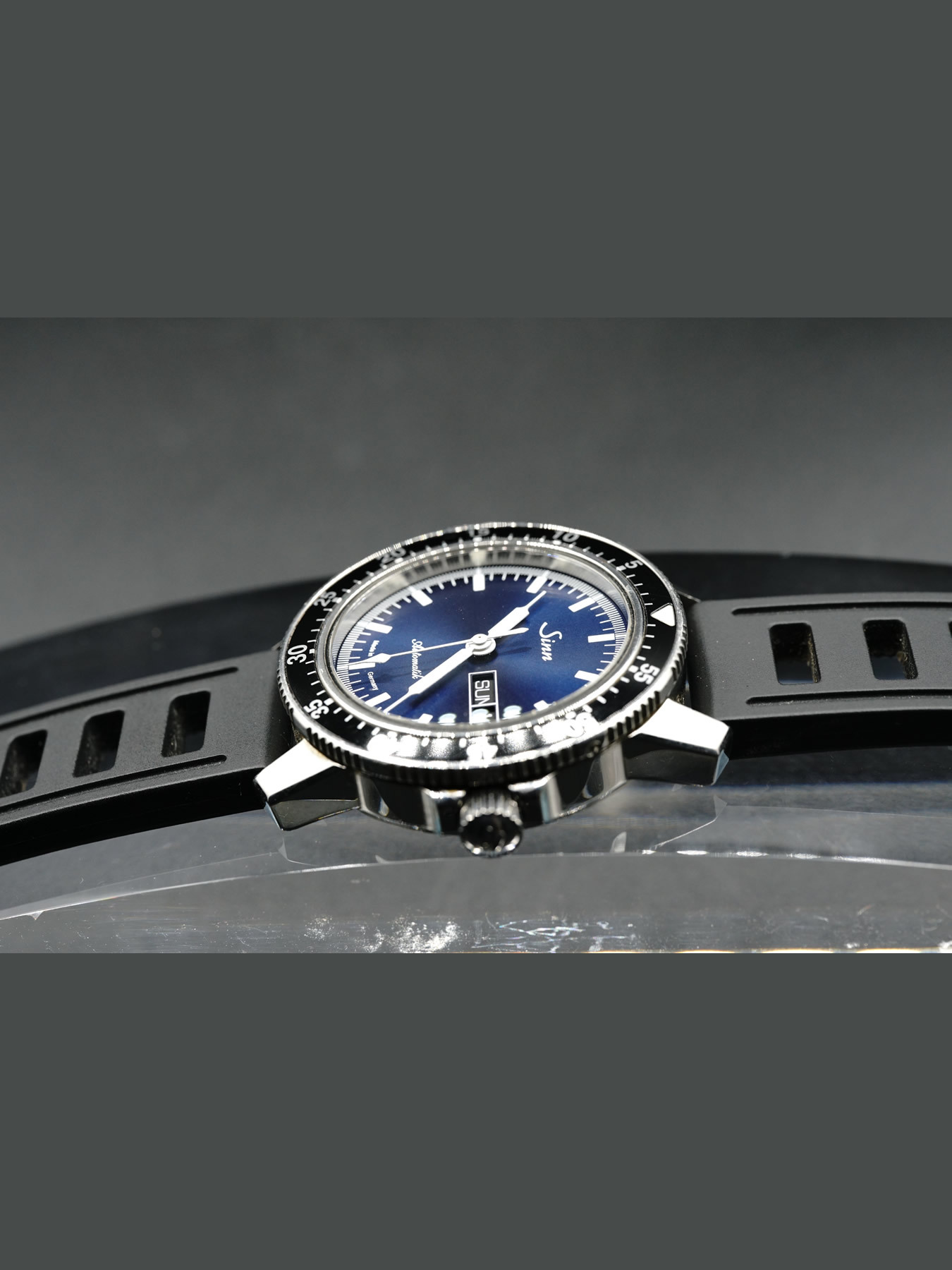 - This timepiece features a 41mm steel case paired with a high quality rubber strap. It showcases a distinctive blue dial and is powered by a precise automatic winding movement. The watch is designed with a water resistance of up to 200m.