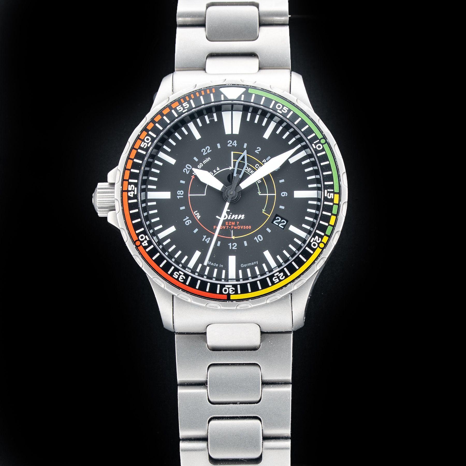 This Sinn Mission Timer 7 EZM7 is in GREAT condition. This watch includes its Original Box, Original Papers and Warraty Card Dated 2012. This watch has been fully authenticated and certified by Exquisite Timepieces. Please note, the photos shown are of the actual watch you will receive.