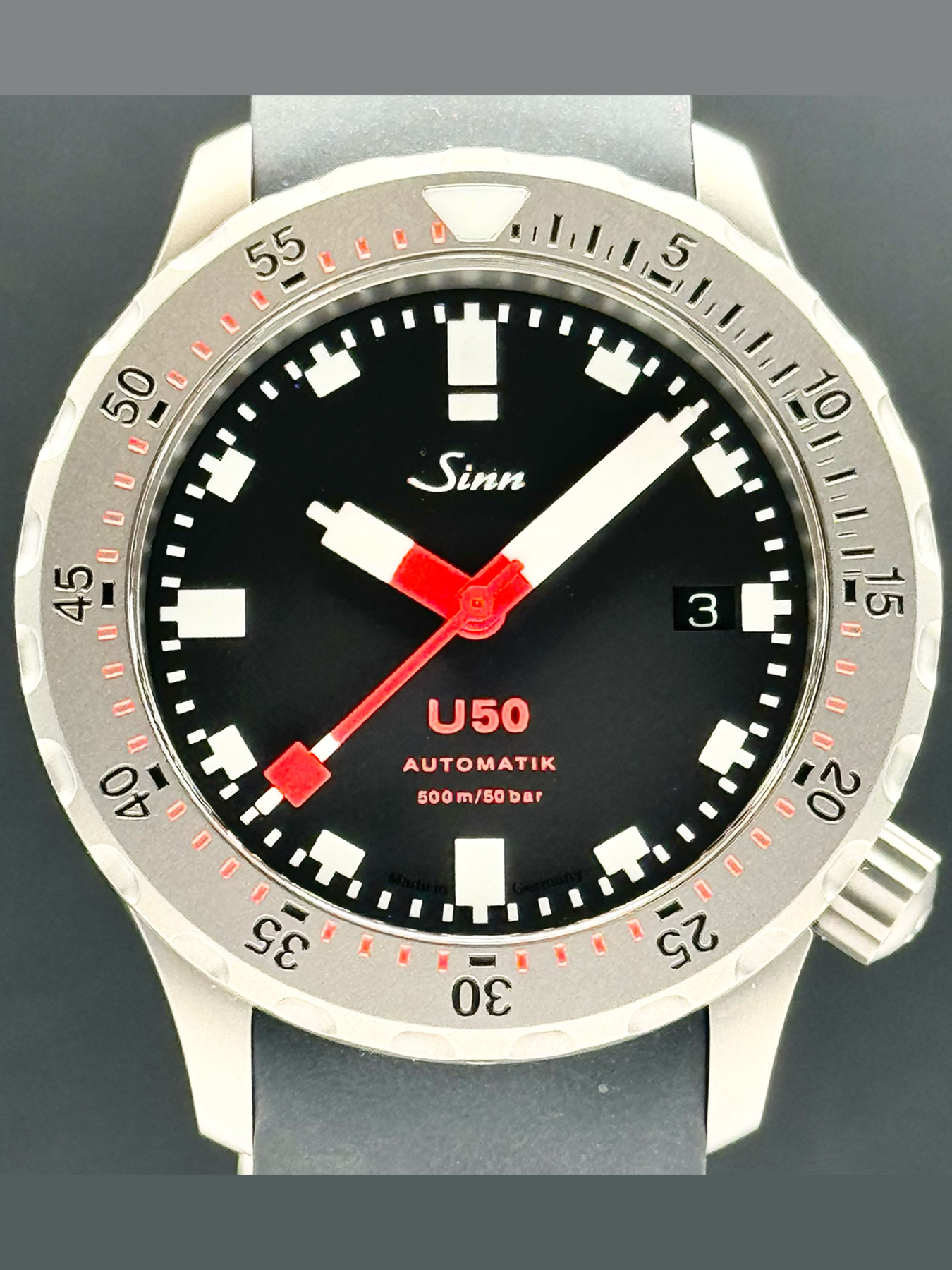 This Sinn U50 is in EXCELLENT condition. This watch includes its Original Box and Warranty Card Dated 08/2024. This watch has been fully authenticated and certified by Exquisite Timepieces.