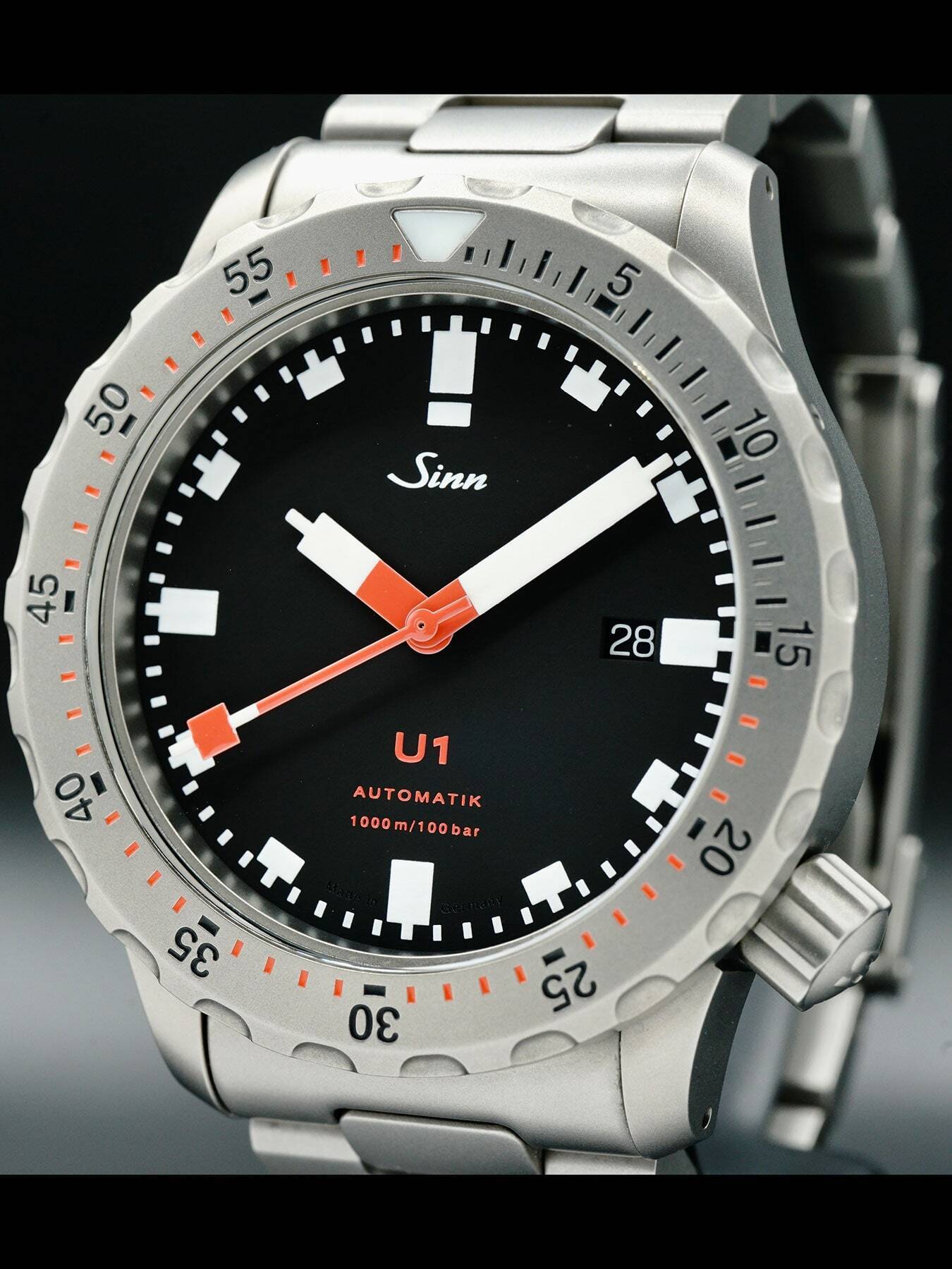 This Sinn Uhren Modell U1 is in EXCELLENT condition. This watch includes its original box, instruction manual, and guarantee card dated for August 2021. Extra stainless steel bracelet links.