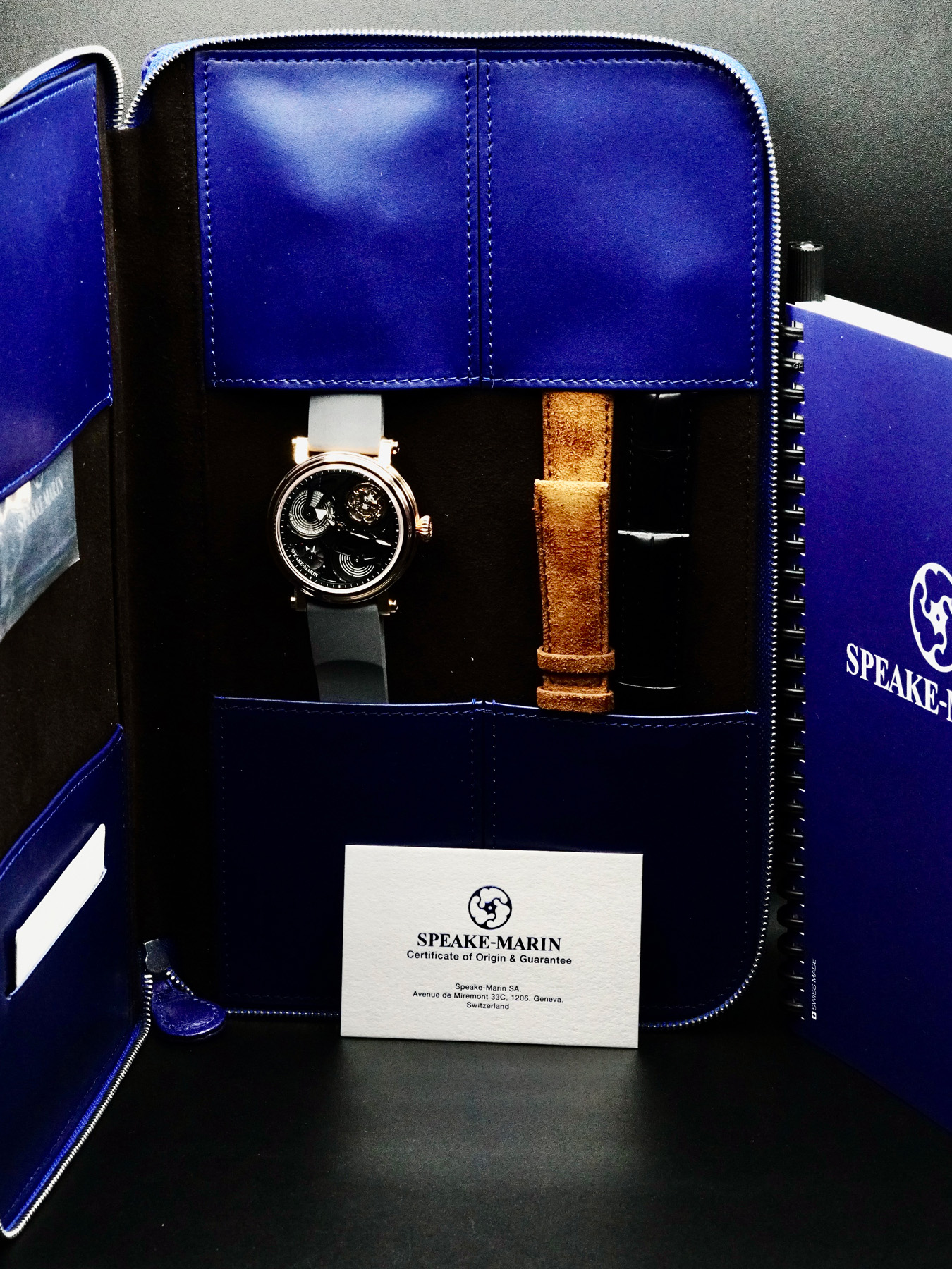 Mechanical Manual movement powered by Speake Marin Caliber SMA05. Water resistant up to 30 meters.