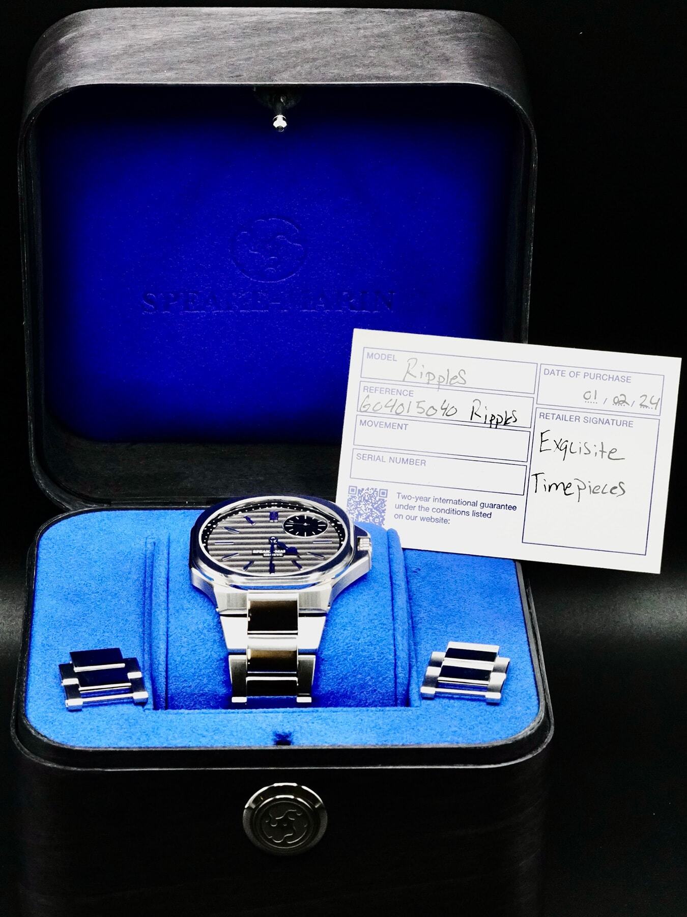This Speake Marin Ripples 604015040 is in EXCELLENT condition. This watch includes its original box and warranty card dated for 2024. Extra stainless steel bracelet links. This watch has been fully authenticated and certified by Exquisite Timepieces.