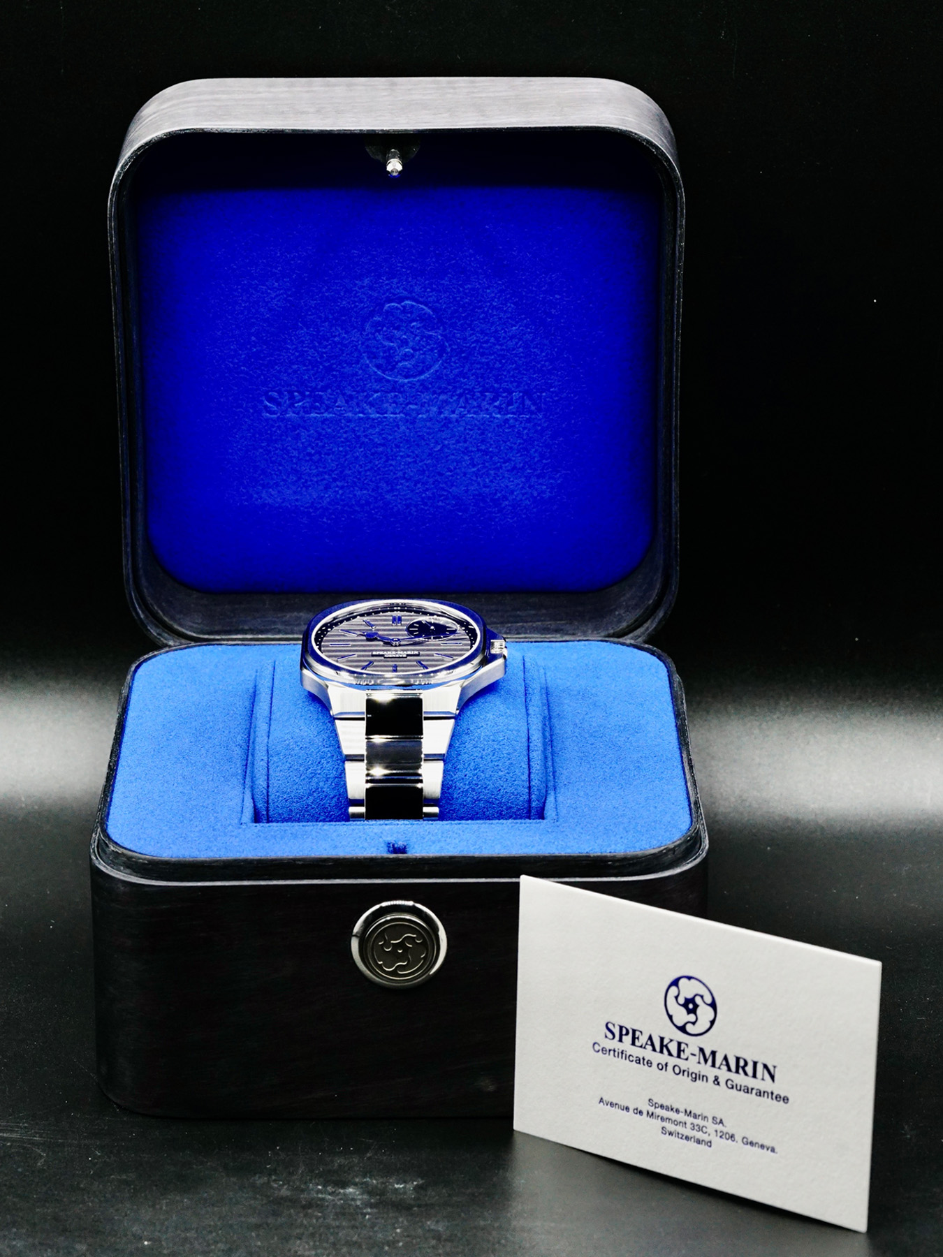 This Speake Marin 604015040 Ripples is in GREAT condition. This watch includes its Original Box, Original Papers and Warranty Card Dated 02/08/2022. This watch has been fully authenticated and certified by Exquisite Timepieces.