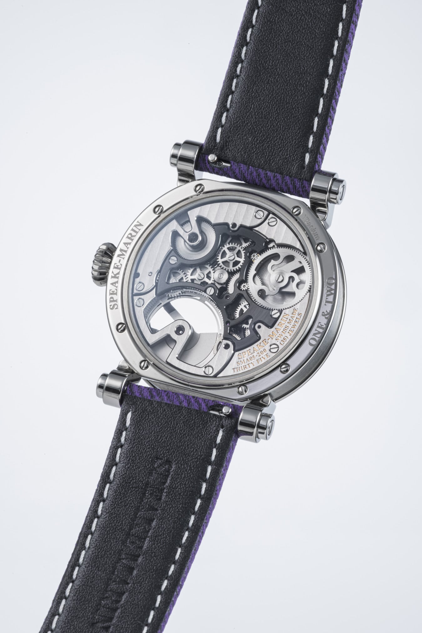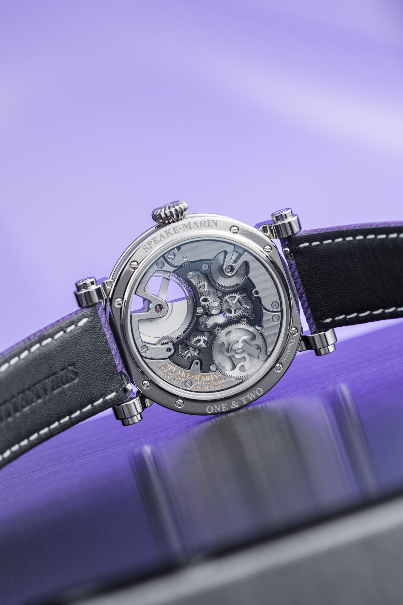 As with all Speake Marin calibres, the rhodium-plated tungsten micro-rotor is integrated into the movement, thus helping to reduce its thickness and allowing the case to be of limited height.