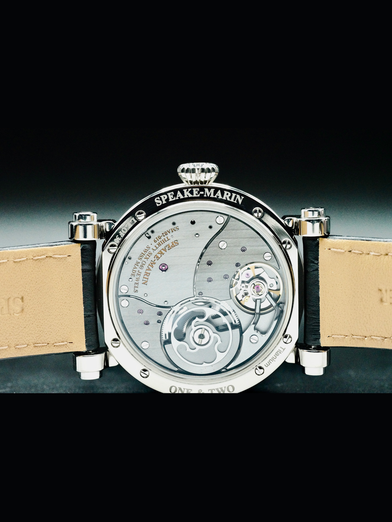 This Speake-Marin Openworked Dual Time 414209250 is in EXCELLENT condition. This watch includes its original box, instructions, and warranty dated for 2023. This watch has been fully authenticated and certified by Exquisite Timepieces.