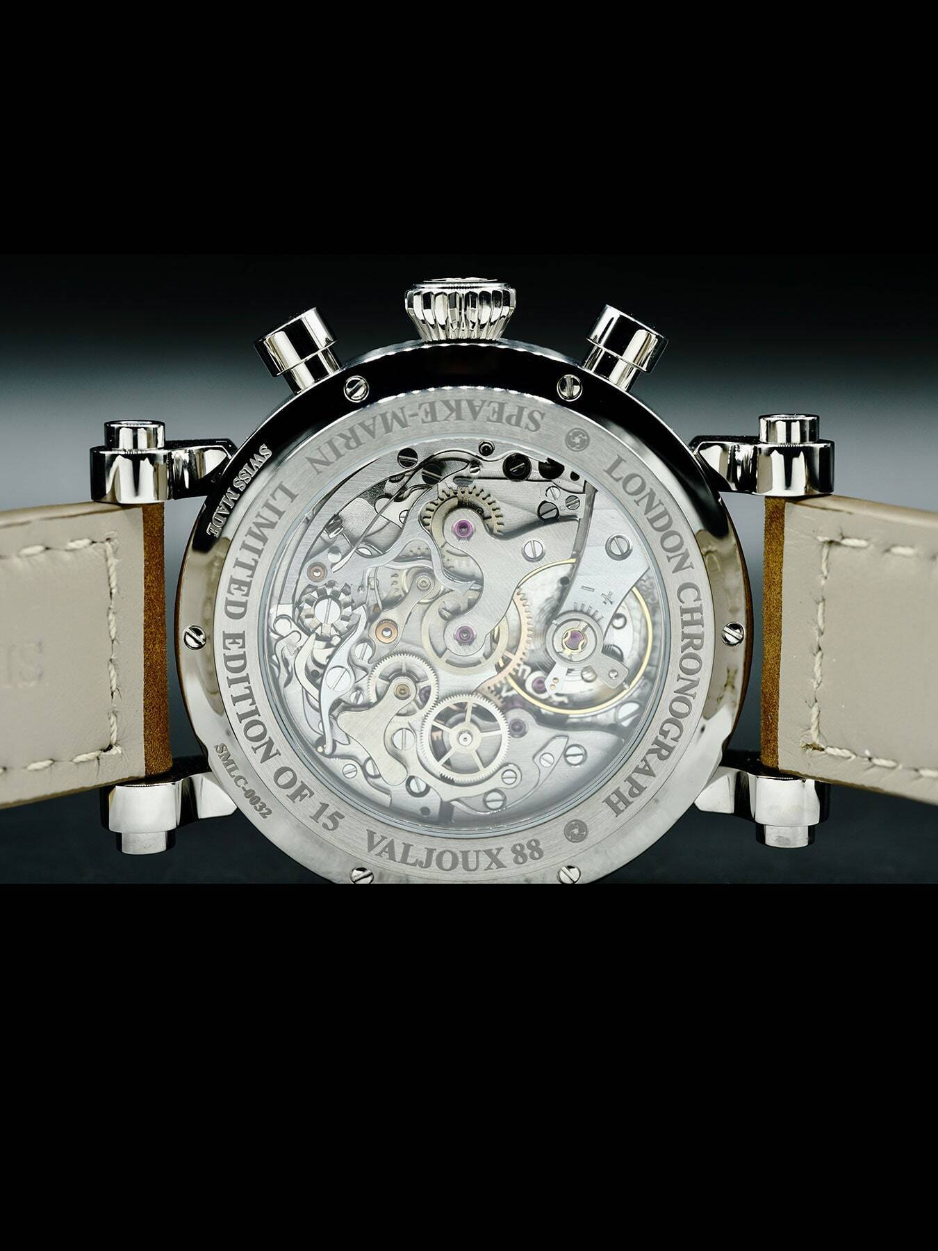For this new limited edition, Speake-Marin pays tribute to one of the most loved chronograph models of the 20th century: the Valjoux 88 Calibre, which is often seen as the finest manually-wound chronograph ever, thanks to its column-wheel and its three counters.
