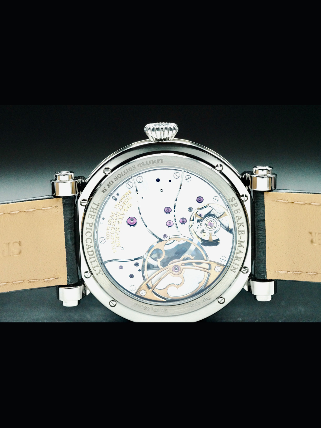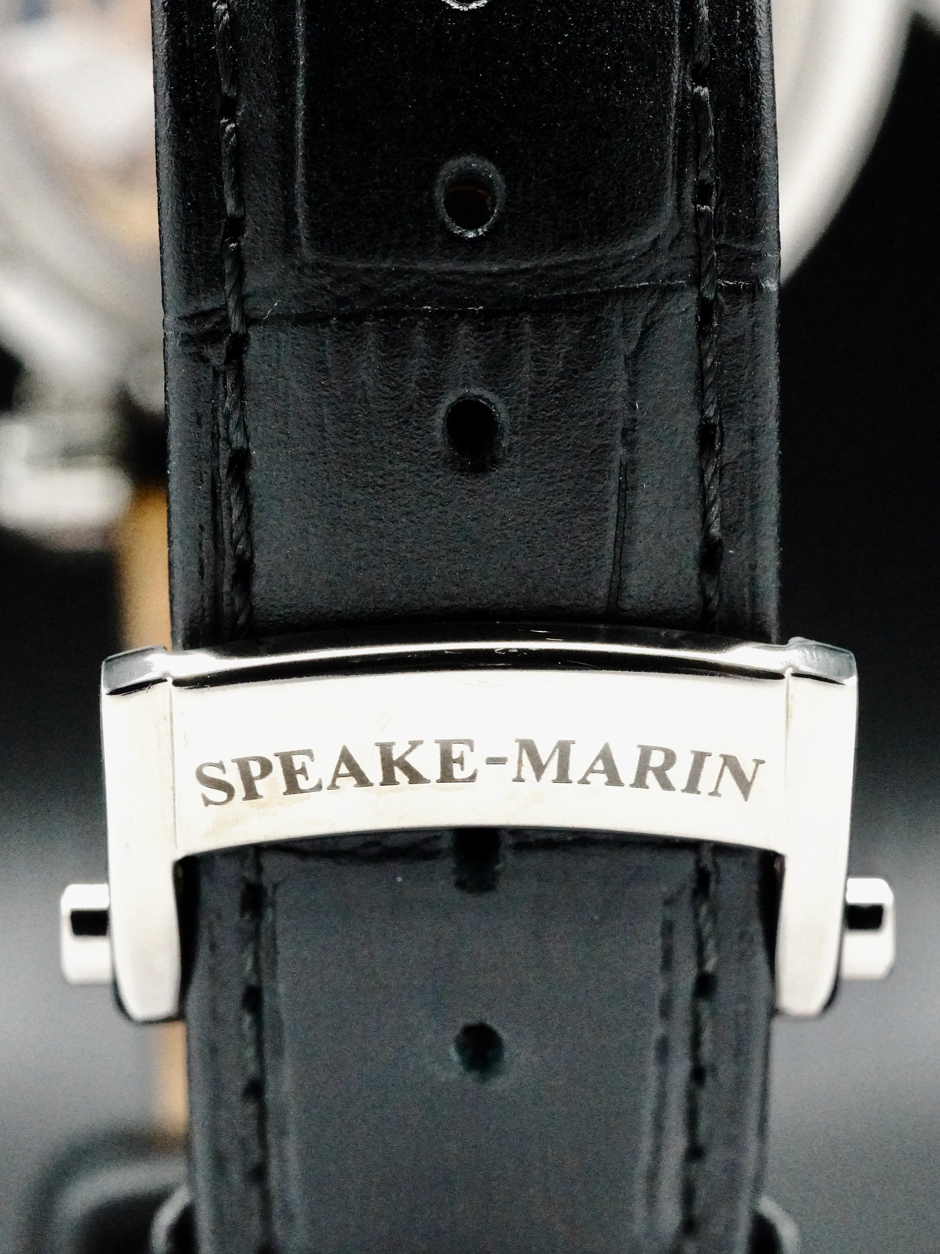 Self-Winding movement powered by Speake-Marin Calibre SMA01. Water resistant up to 30 meters.