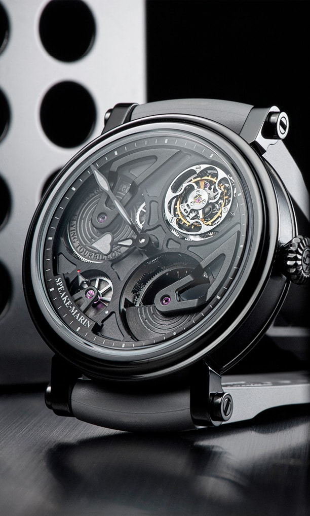 The new SMA05 Calibre is part of the SMA proprietary movement collection and positions a strong element at 1:30: the flying tourbillon. Speake-Marin is the only watchmaker who positions its tourbillon there.