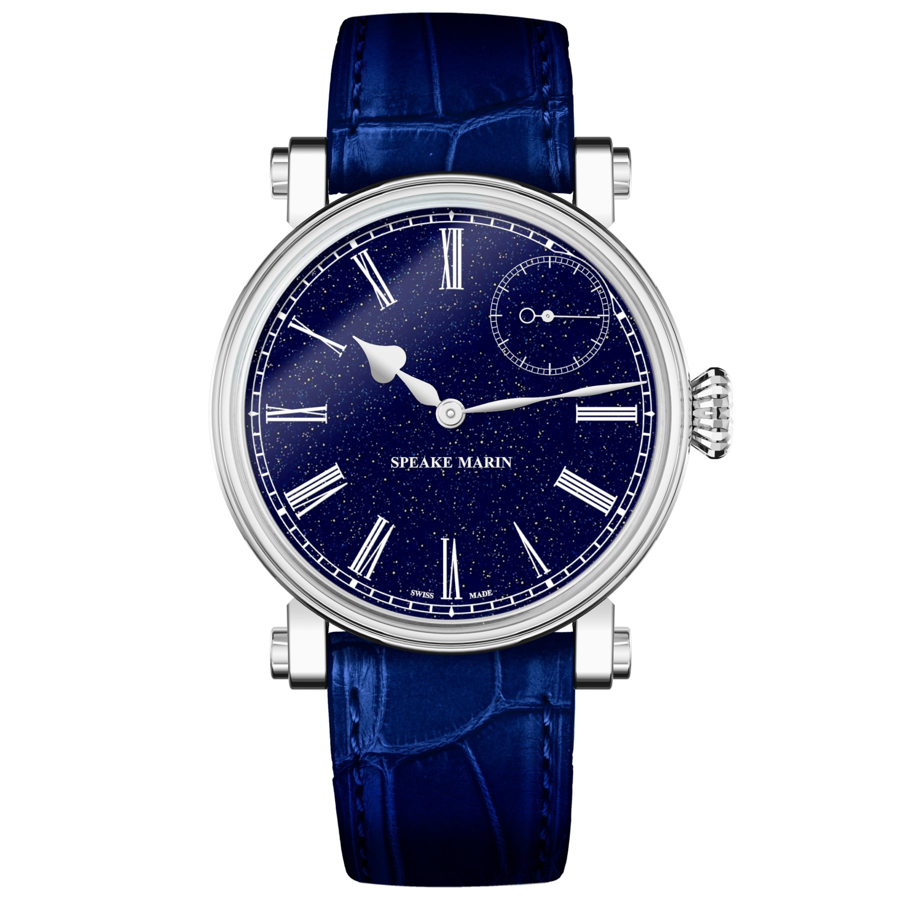 Blue aventurine glass dial with a starry-sky effect