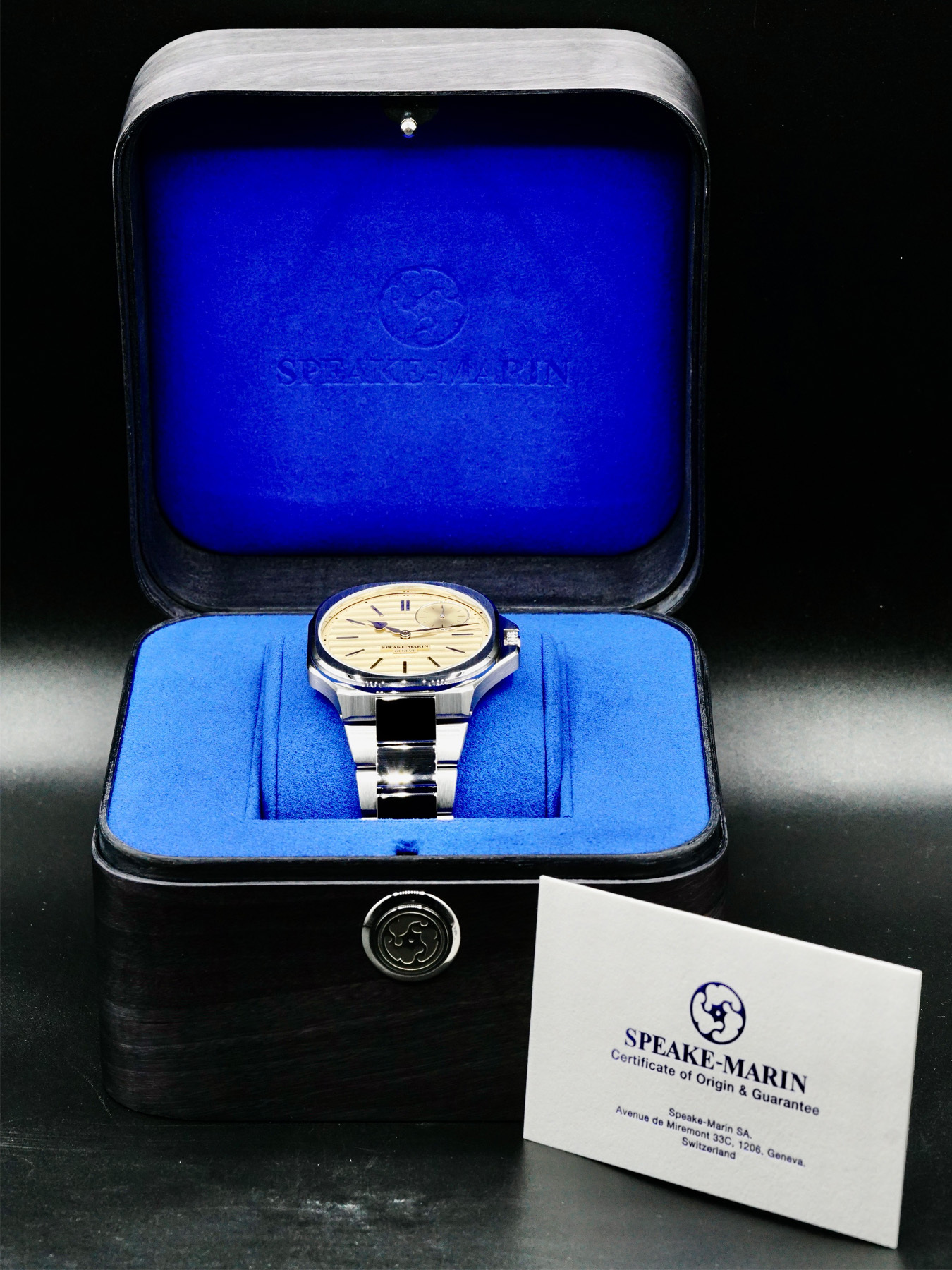 This Speake-Marin Ripples Anniversary 604015070 is in EXCELLENT condition. This watch includes its original box, instructions, and warranty dated for 2023. Limited Edition of 50 pieces. This watch has been fully authenticated and certified by Exquisite Timepieces.