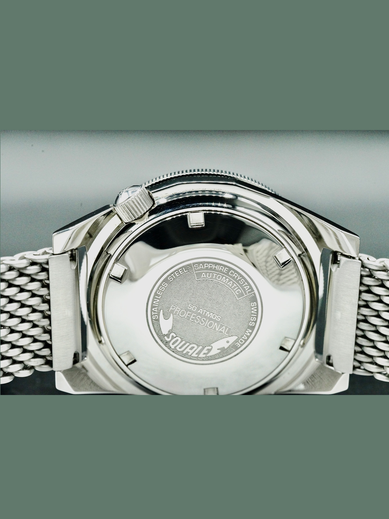 This Squale 1521 Militare features a 41mm polished stainless steel case with a solid case back on a stainless steel bracelet. This watch also sports a blue dial with luminous hands and index dial markers covered by scratch resistant sapphire crystal.