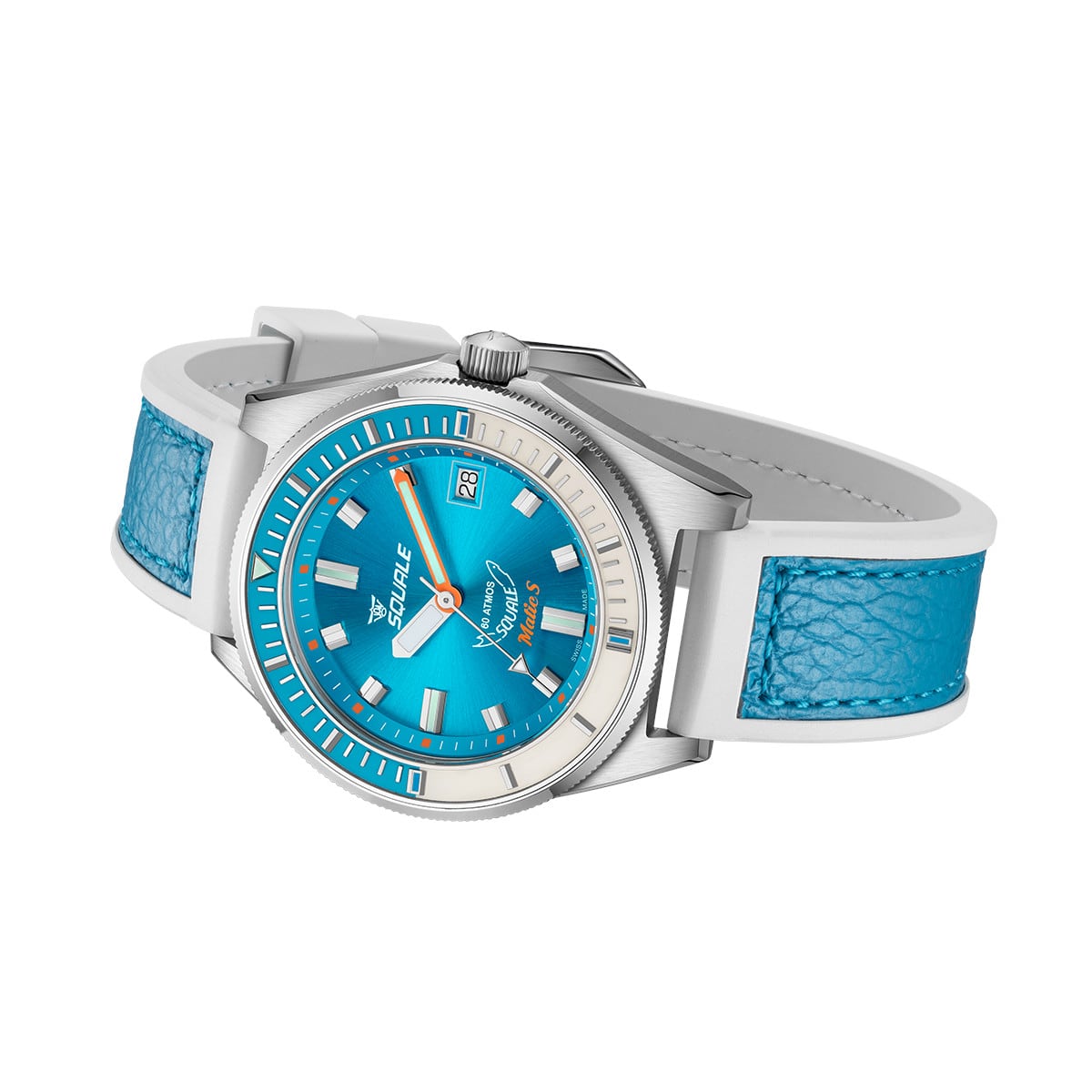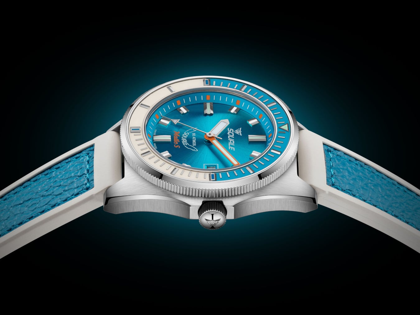 Beyond the case, the dial design evolves with refined details: updated hour markers, subtle orange accents along the inner rehaut, and the introduction of the new Matic-S logo. These changes underscore Squale’s dedication to precision and readability, both under the sea and in everyday life.