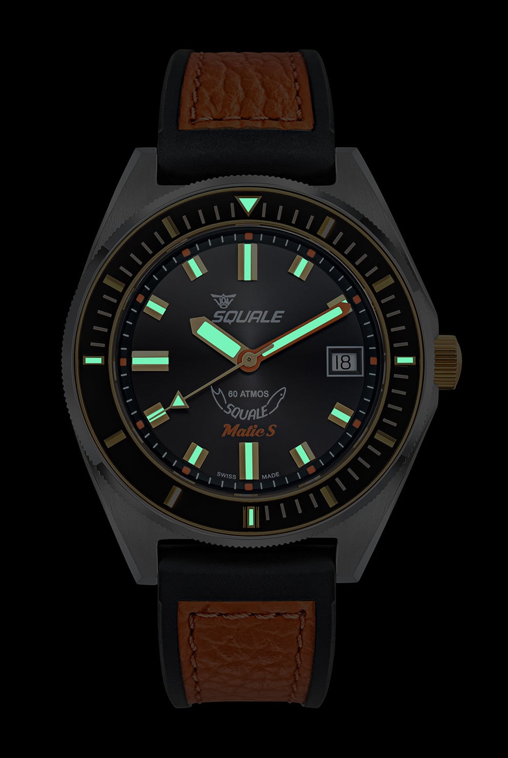 Beyond the case, the dial design evolves with refined details: updated hour markers, subtle orange accents along the inner rehaut, and the introduction of the new Matic-S logo. These changes underscore Squale’s dedication to precision and readability, both under the sea and in everyday life.
