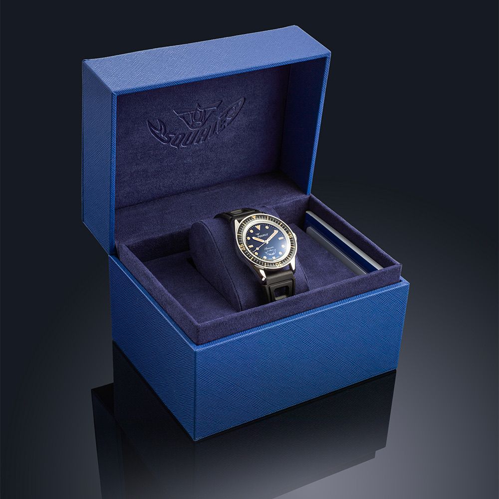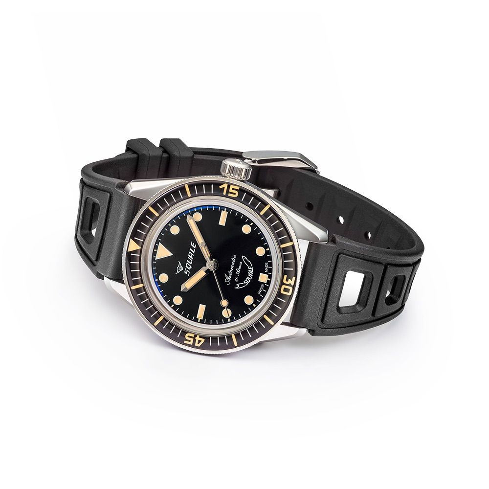 The new SUB – 37 Legend channels the spirit of Squale's classic divers with compact proportions, a 37 mm case, and a clean, highly legible bezel engineered for real underwater timing. Water resistance to 300 meters underlines its serious, no-nonsense tool-watch character.