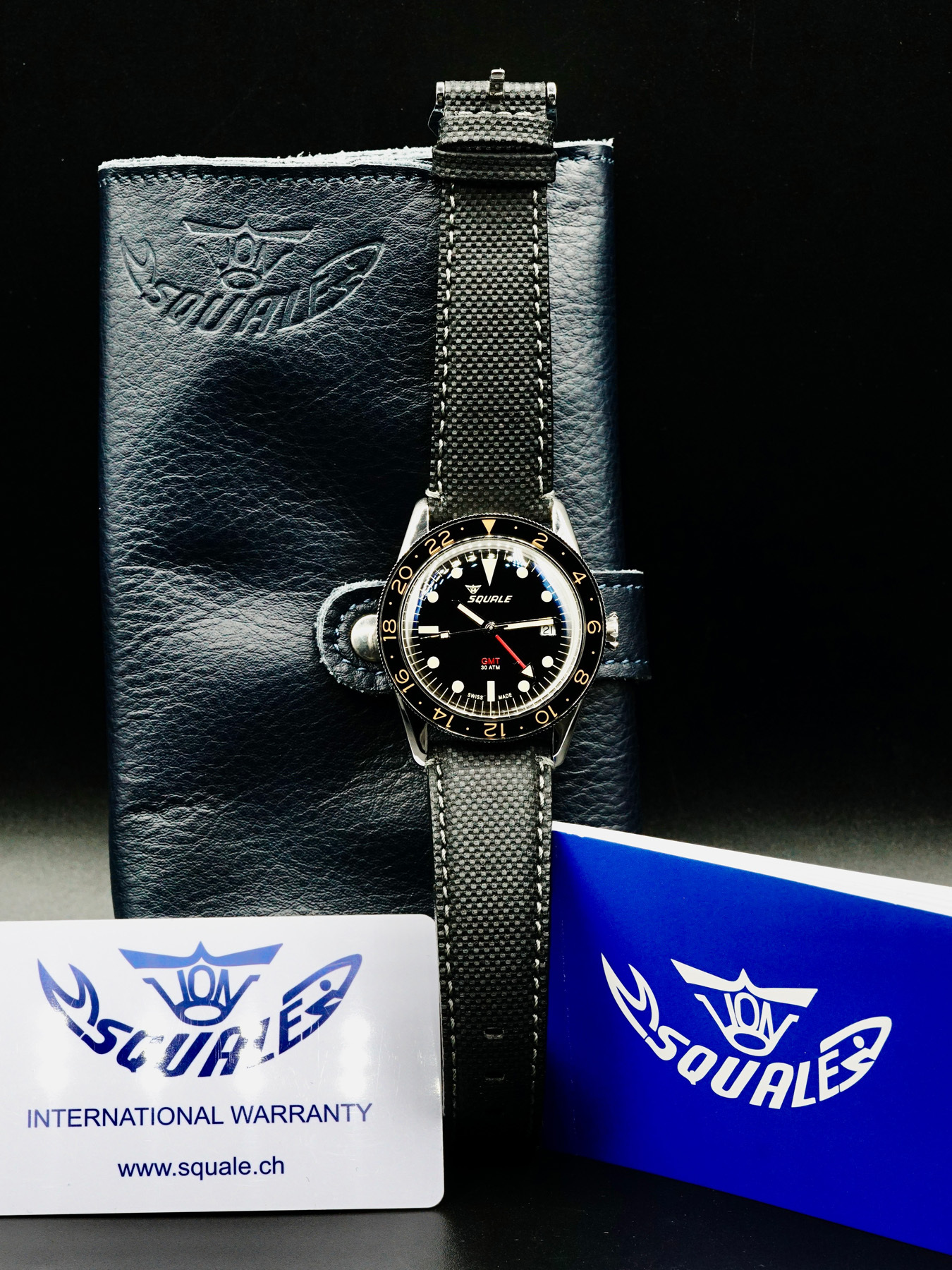 This Squale SUB-39 GMT Vintage SUB39GMTV is in EXCELLENT condition. It has box and papers. International warranty dated for July 2022.