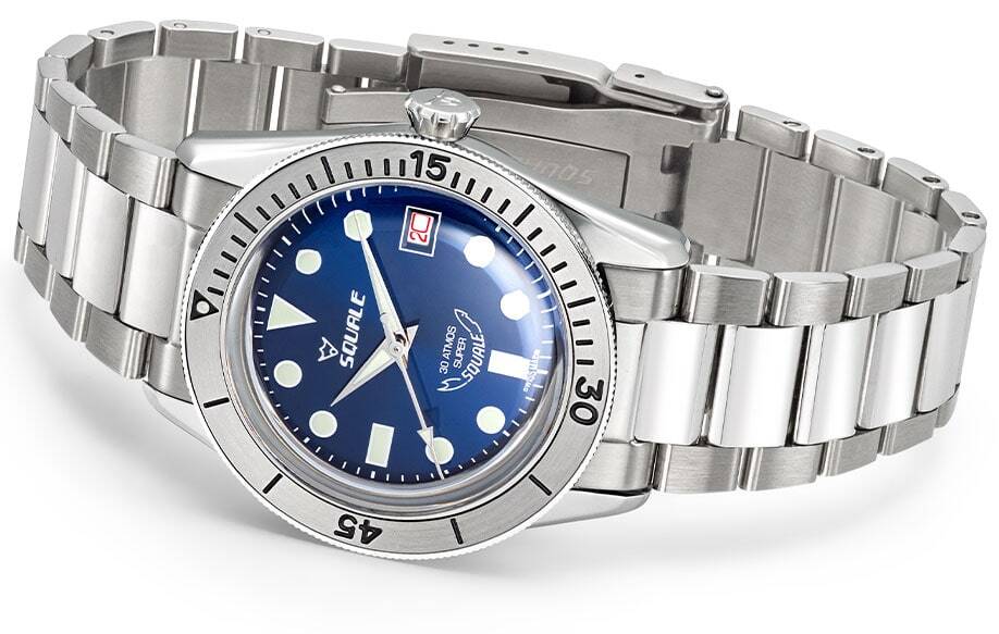 The Squale Sub-39 SuperBlue Bracelet SUB-39RD.BR22 features a steel with a Screw-In-Caseback. It's case is 12 mm thick. The crystal used is a sapphire crystal, which is able to be utilized in direct sunlight. The dial is Blue. The hands are Luminous. The Squale Sub-39 SuperBlue Bracelet SUB-39RD.BR22 functions include hours, minutes, seconds and date. Additionally, the SUB-39RD.BR22 is water resistant for up to 300 m, so feel free to swim or even dive with it. The movement is Sellita SW 200-1 Automatic. The timepiece sports a Steel strap for ultimate comfort. The strap is finished with a deployant clasp. When purchasing this watch, you’ll receive a 2 Years warranty from Squale. The retail price for the Squale Sub-39 SuperBlue Bracelet SUB-39RD.BR22 is 1465 USD. This watch is available for purchase at Exquisite Timepieces