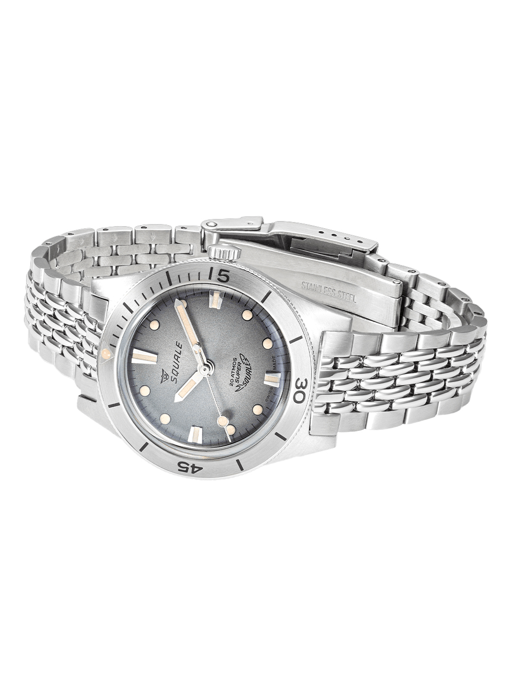 The Super-Squale model was launched in the 60s, and immediately became one of the most popular watches of the Squale brand.Indeed it was not by chance that in 1959 charles Von Büren registered the “Super-Squale” trademark together with the “Squale” brand itself, symbolic of a watch destined to become iconic in the world of dive watches.