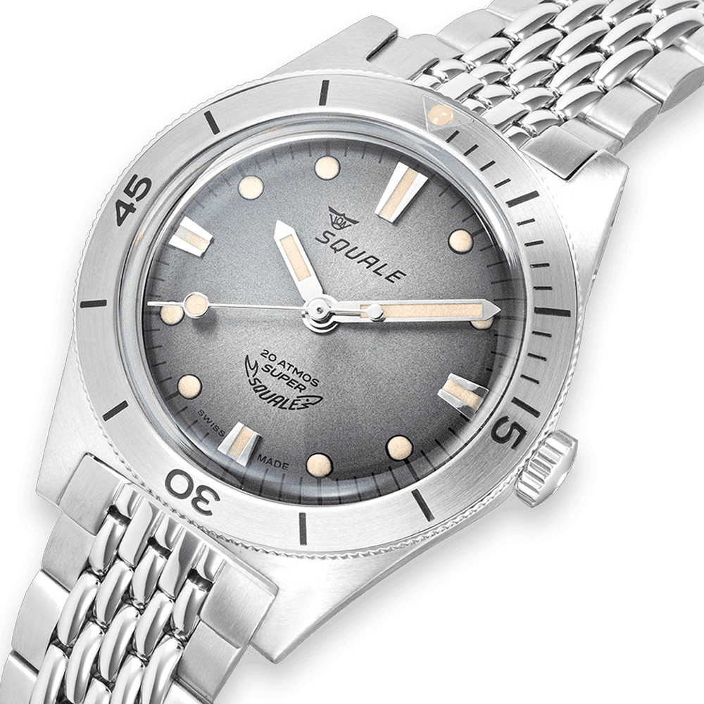 The Super-Squale model was born to be a skin diver: with a water resistance of 200 meters, a 38-millimeter diameter case and a width of only 45mm, the Super Squale has been designed to be as lightweight as possible during dives, with or without a wetsuit.