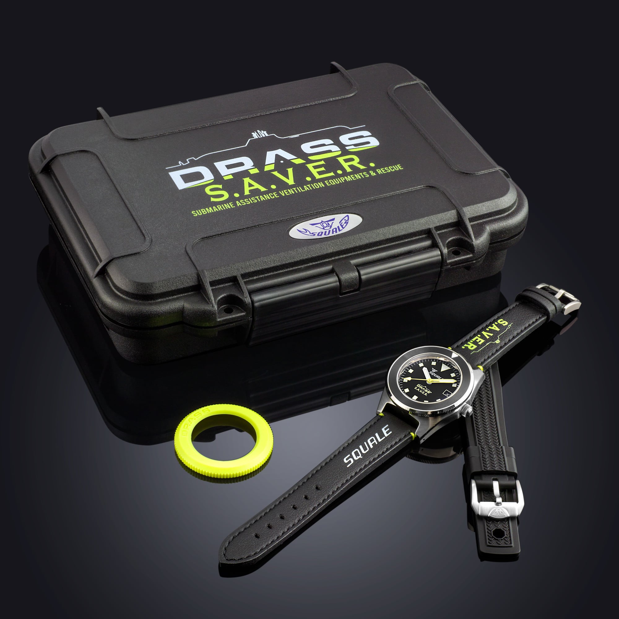 Squale and Drass embody two complementary excellences: on one side, Swiss tradition in professional dive watchmaking, and on the other, Italian leadership in submarine construction and deep-sea technologies. United by a long history and the same pioneering spirit, they present the new Squale DRASS S.A.V.E.R. model, inspired by the innovative SAVER rescue system, designed to ensure safe and effective rescue operations even in the most extreme marine conditions.